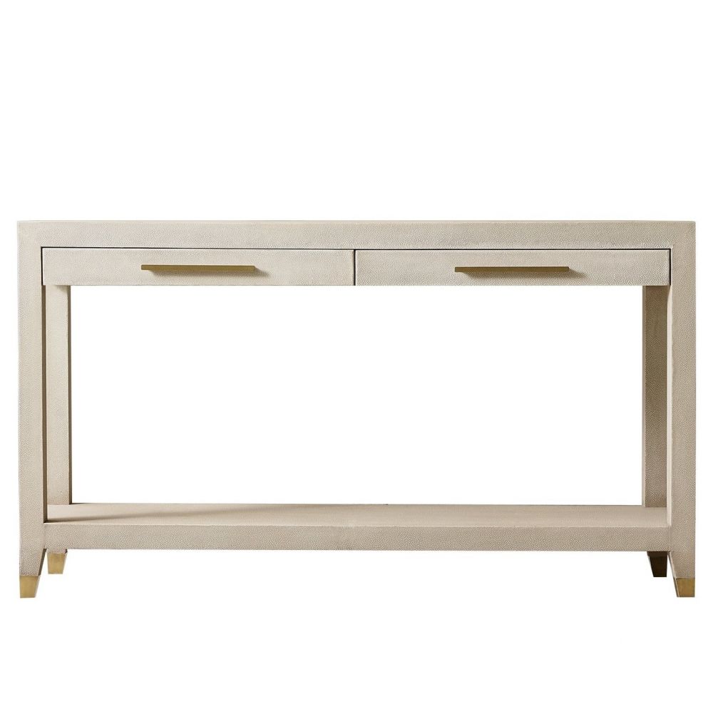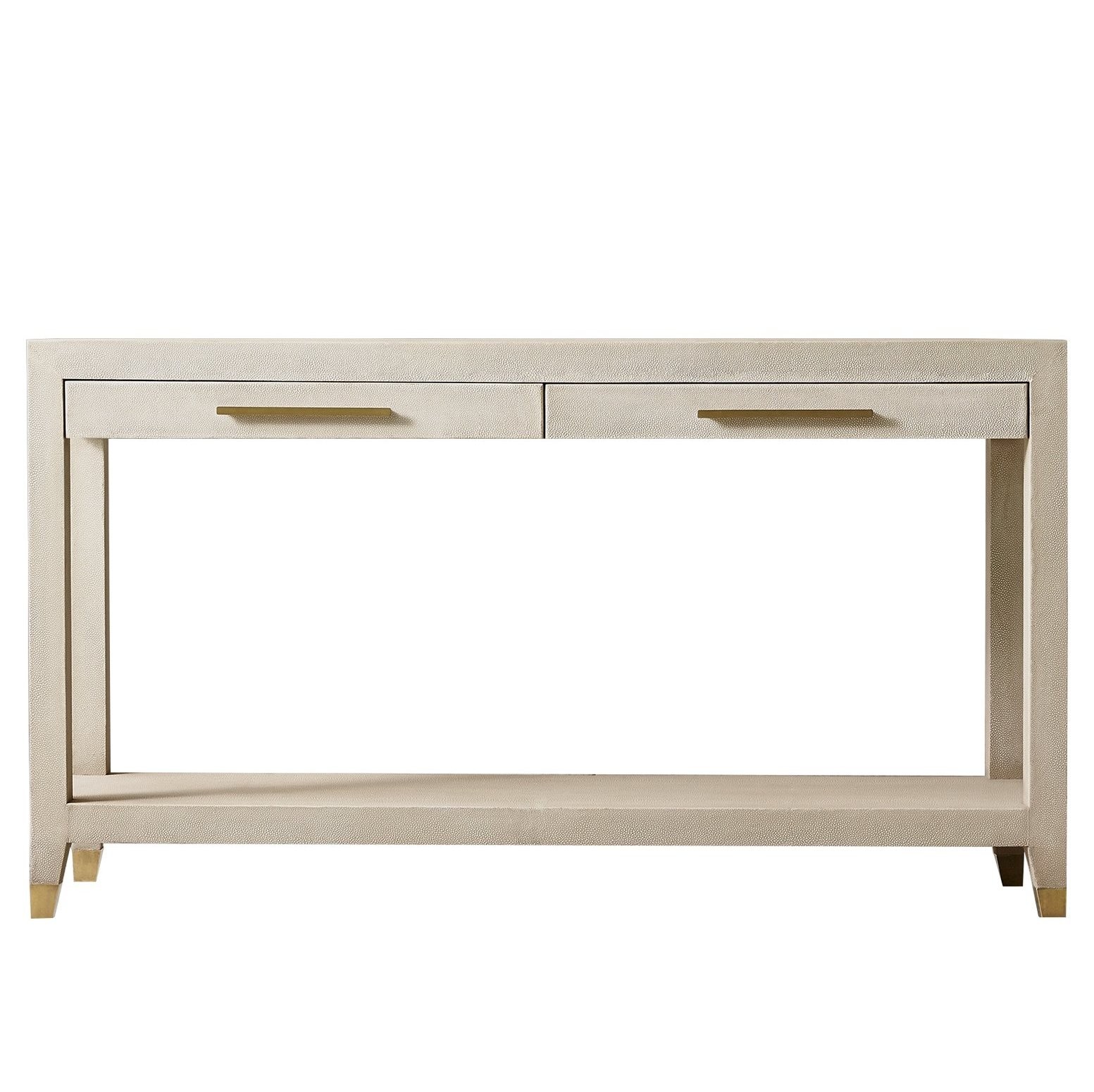 Консоль бежевая “Мередит” – это элегантное и изысканное решение для вашего интерьера. Сочетая в себе современный и классический дизайн, эта консольная тумба придаст вашему помещению неповторимый стиль и шарм. Одной из особенностей этой консоли является уникальная обивка, известная во Франции 18-го века как шагрень. Сегодня эта обивка вернулась, чтобы придать особый штрих нашей консольной тумбе. Текстурированная кожа, воспроизводящая рисунок и текстуру натуральной кожи, оборачивает прямые линии стола, создавая ощущение мягкости и комфорта. Бежевый цвет обивки придает консоли нежный и аккуратный вид, позволяя легко вписать ее в любой интерьер. Консоль “Мередит” также отличается функциональностью. Два ящика, расположенные внизу столешницы, обеспечат дополнительное пространство для хранения. Они позволяют организовать вещи в порядке и сохранить их в безопасности. Это особенно полезно для тех, кто хочет использовать консоль не только как элемент интерьера, но и для хранения различных предметов. Ножки консоли “Мередит” имеют зауженную форму и отделку из теплой латуни, что добавляет изысканности и завершает общую эстетику продукта. Они придают консоли прочность и устойчивость, обеспечивая долговечность и надежность использования. Консоль бежевая “Мередит” станет прекрасным дополнением к вашему интерьеру, подчеркнет вашу индивидуальность и добавит стиля в ваш дом!