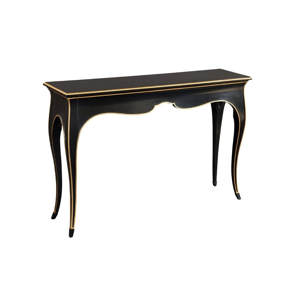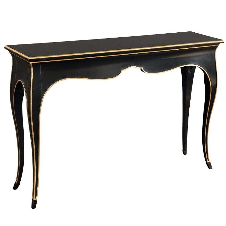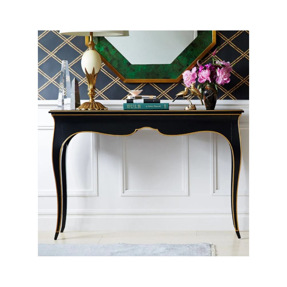 Чёрная консоль “Дрэзден” — утончённая классика с благородным характером. Прямоугольная столешница, обрамлённая элегантным золотым кантом, подчёркивает строгость формы и изысканность исполнения. Четыре изящно изогнутые ножки придают конструкции лёгкость и динамику, а тонкая золотая линия, проходящая вдоль их изгибов, гармонично повторяет плавные очертания силуэта. “Дрэзден” идеально впишется в классический или эклектичный интерьер, становясь его стильным акцентом.