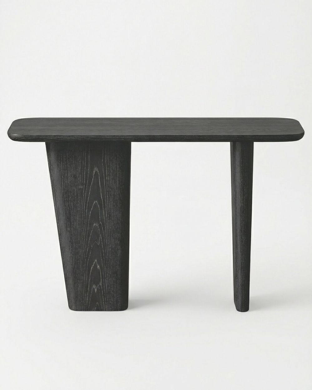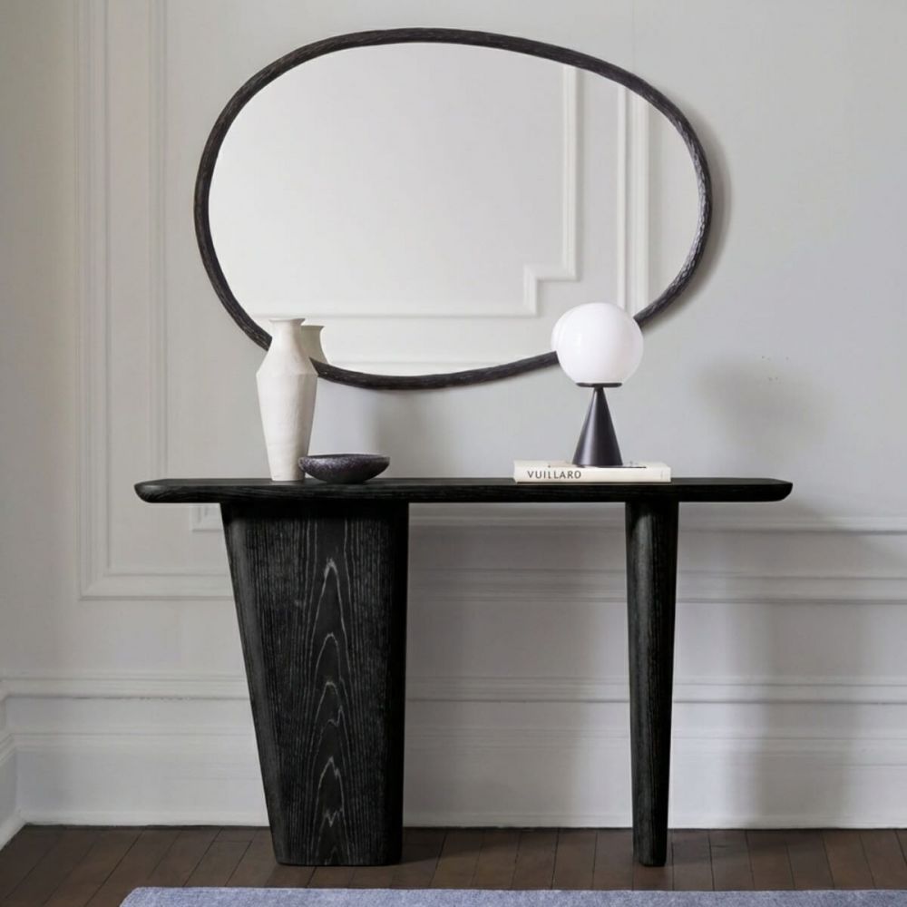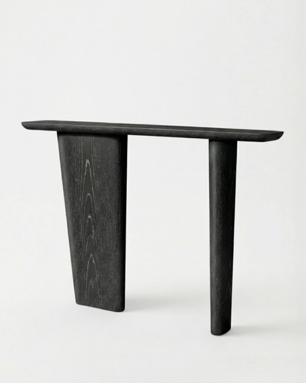 Особенности: благодаря асимметричному дизайну и контрасту черного цвета с живой текстурой дерева консоль особенно эффектно смотрится в интерьерах, где важна игра форм и линий – она станет не просто мебелью, а архитектурным акцентом.