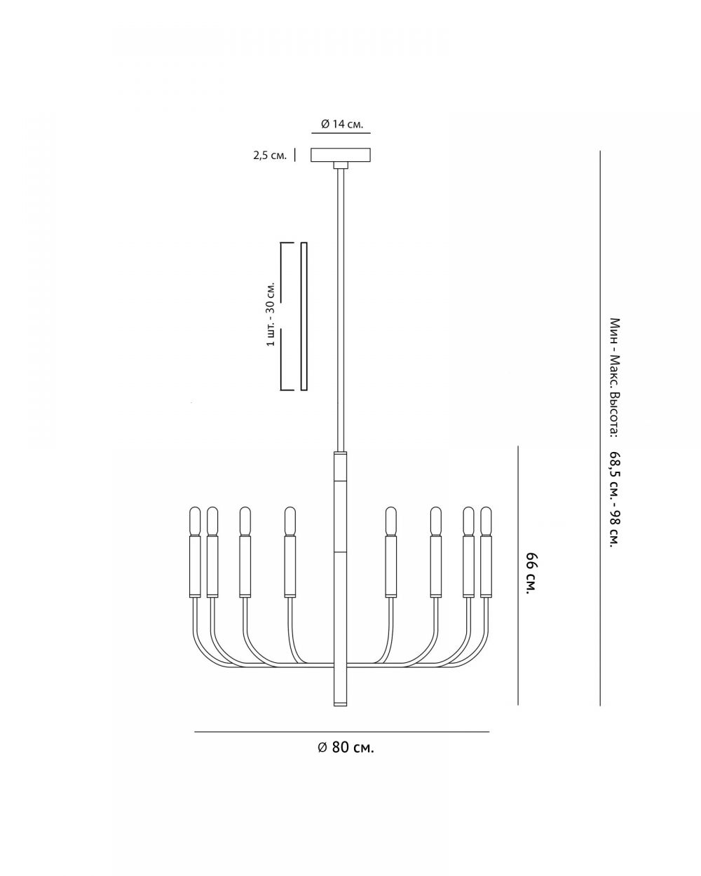 Гибкость установки: Благодаря регулировке общей высоты, вы можете адаптировать люстру под конкретный сценарий. Опустите её ниже для создания уютной, камерной атмосферы над столом или поднимите выше для более общего, но не менее эффектного освещения.