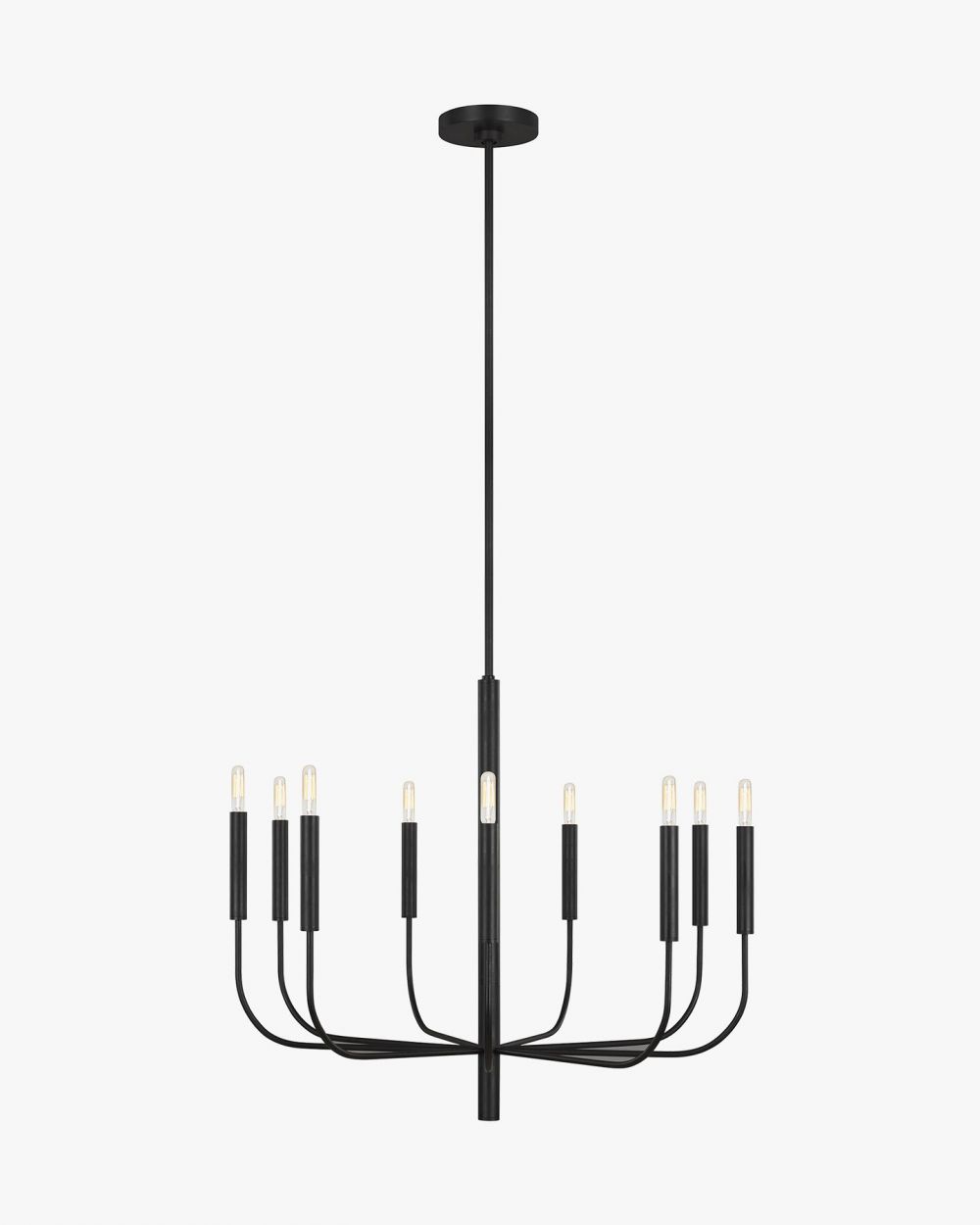 Большая чёрная люстра «Уорвик» — это решение. Её классический линейный силуэт, переосмысленный в современном ключе, притягивает взгляд своей строгостью и плавными изгибами. Девять ламп создают мощный поток света, превращая её в самостоятельный художественный объект и главный источник атмосферы в комнате.