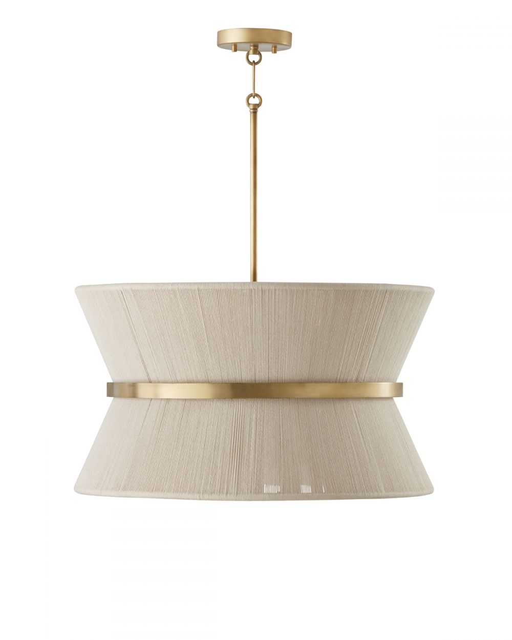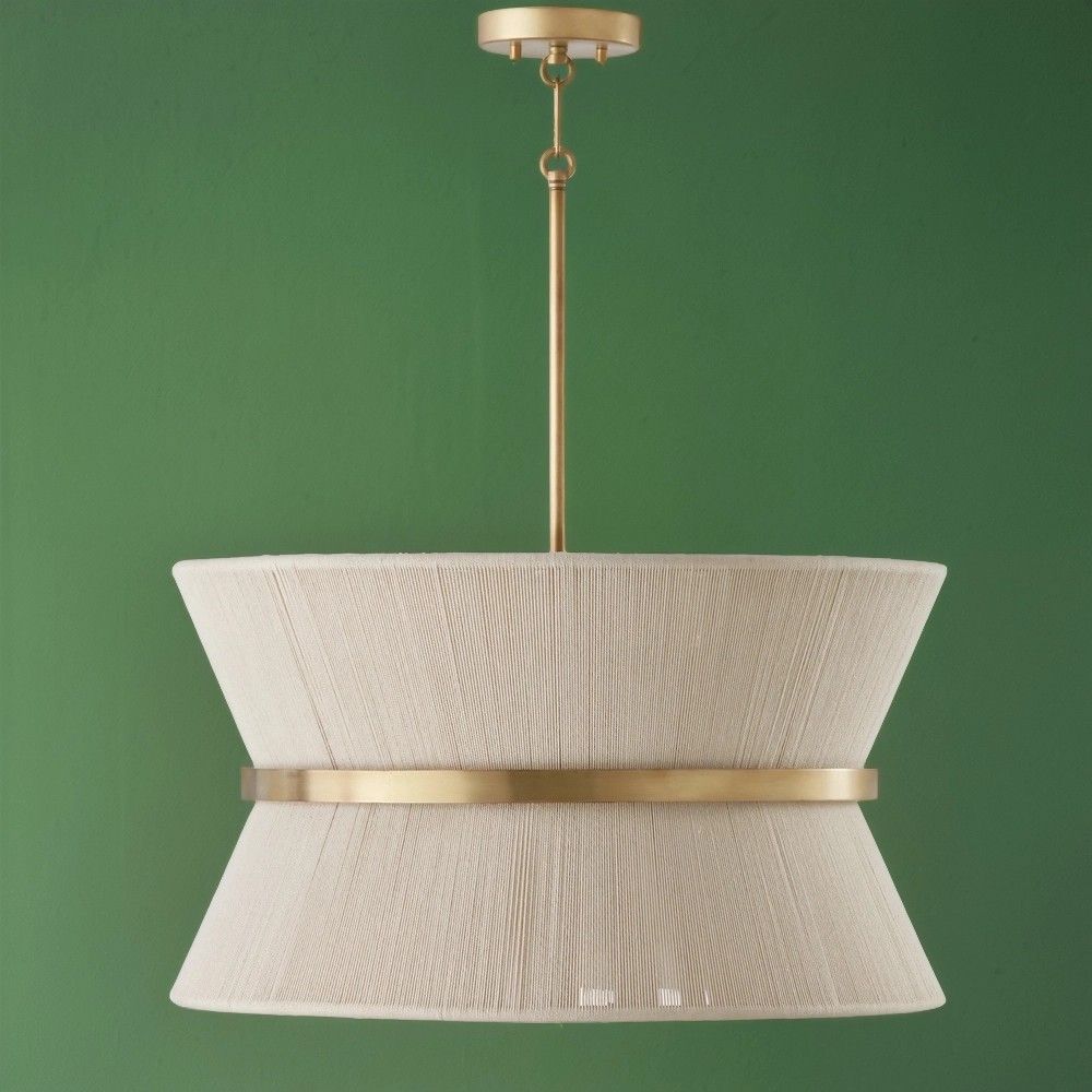 Эксклюзивный дизайн: Благородное латунное покрытие и бежевый текстильный абажур делают люстру универсальным элементом для современных интерьеров
