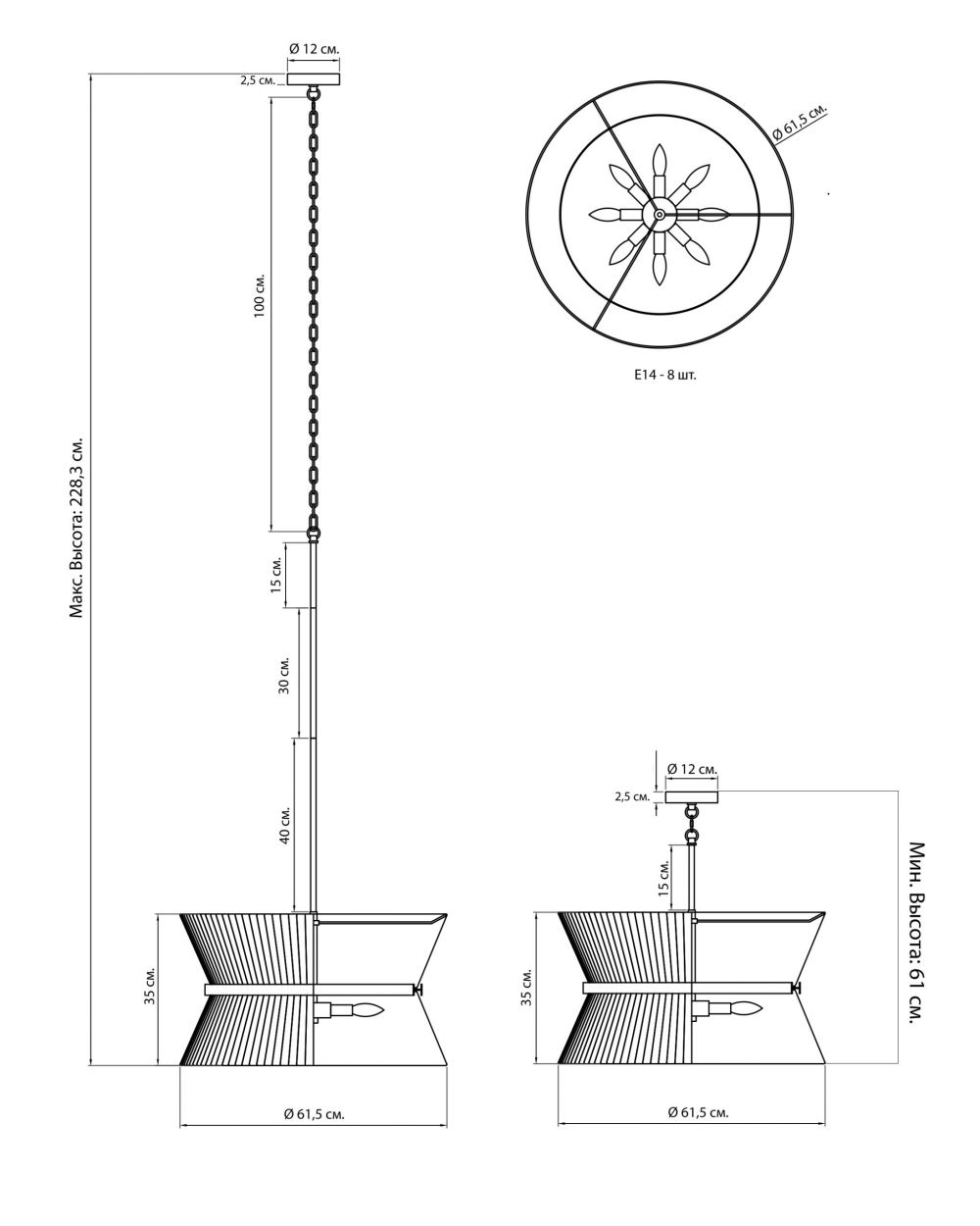 Электрические параметры: 8 ламп E14, мощность до 320 Вт