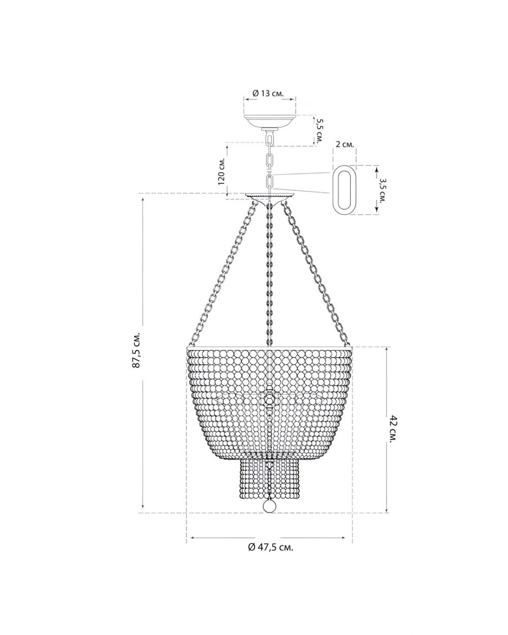 Особенности: Каскадная форма, регулировка высоты (цепь 120 см + провод 140 см), минимальная сборка.