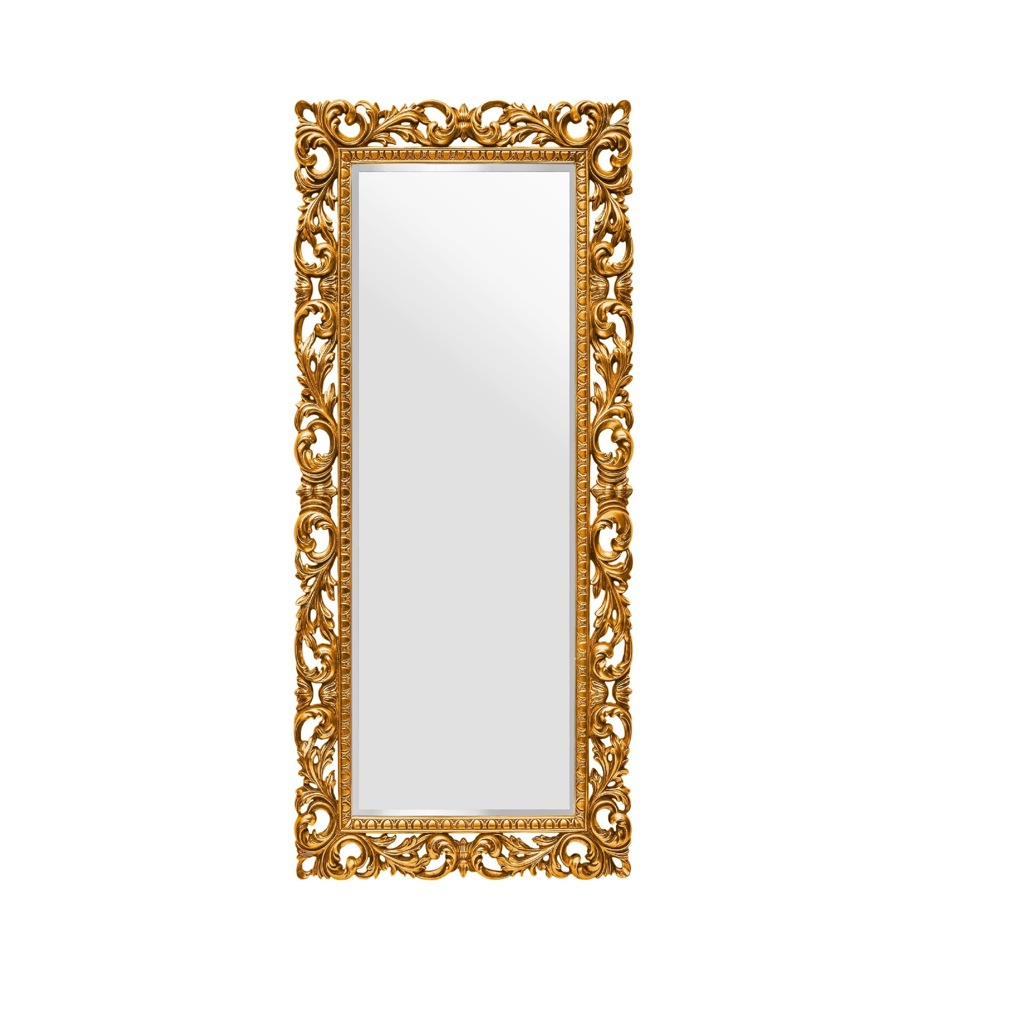 Напольное зеркало Kingsley Gold (Кингсли) размером 90×188 см — это полноценный ростовой формат. Высота 188 см позволяет увидеть себя в полный рост даже очень высоким людям. Рама выполнена в богатом багетном стиле. Цвет — античное золото с благородной патиной.