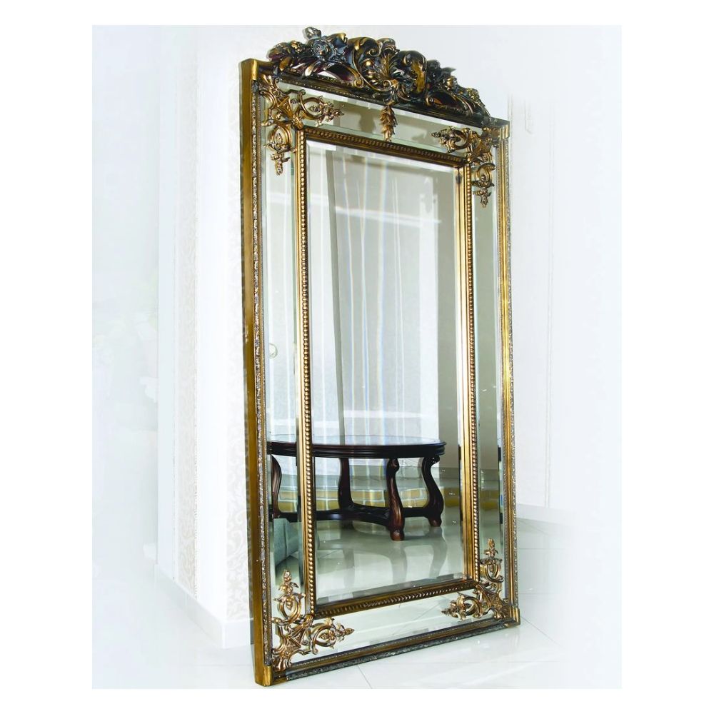 Золотое зеркало в полный рост “Пабло” – это прямоугольная рама выполненная в цвете античное золото с изысканным классическим дизайном и великолепными витиеватыми деталями. Оно имеет четыре панели, которые добавляют в зеркало глубину и объем. Каждая панель украшена фацетом, что придает зеркалу дополнительный блеск и игру света. Кроме того, на раме вы найдете роскошный филигранный узор, который придает зеркалу неповторимость и уникальность. Зеркало “Пабло” высокое и изящное, способное привлечь внимание и стать главным элементом вашего интерьера. Внутреннее зеркало окантовано орнаментом в виде бус, что добавляет изысканности и изящества. Оно является прекрасным дополнением к раме и создает гармоничный общий вид зеркала. Золотое зеркало в полный рост “Пабло” идеально подходит для интерьера в классическом стиле. Его элегантный дизайн и великолепные детали позволяют использовать его как главный акцент в комнате. Оно отражает свет и пространство, создавая ощущение уютности и простора в помещении. Кроме эстетической функции, зеркало также является практичным элементом интерьера. Оно позволяет вам рассмотреть себя в полный рост, оценить свой наряд и почувствовать уверенность перед выходом из дома.