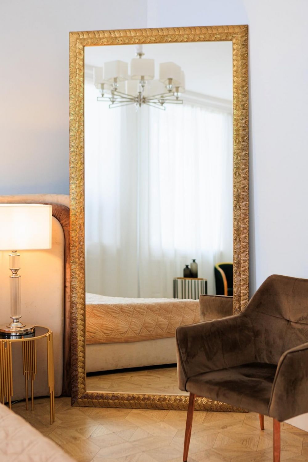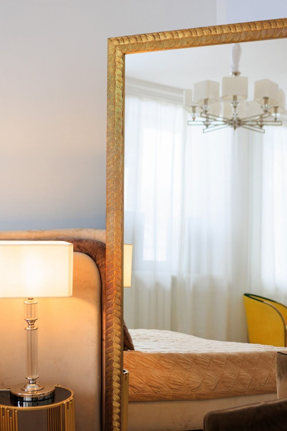 Над комодом в спальне: Станет центральным элементом гарнитура, добавив убранству комнаты лоска и гламура.