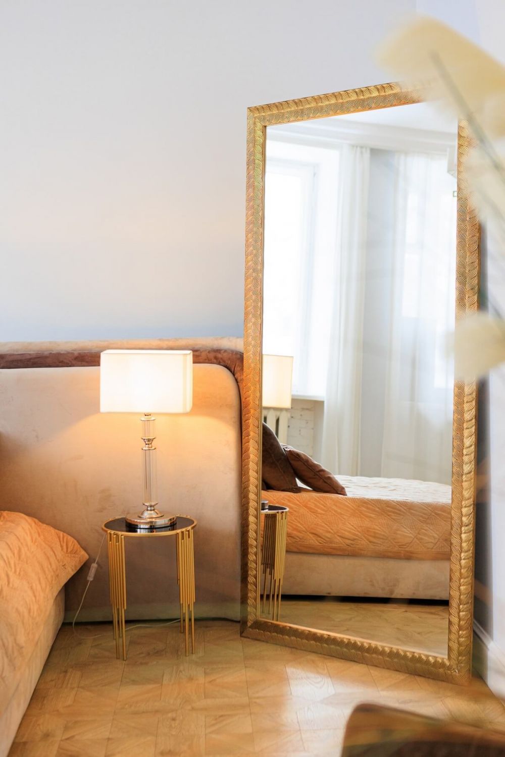 Зеркало Bentota Gold — это больше чем предмет интерьера, это акцент, который переопределяет пространство. Его роскошная рама цвета золота в стильном багете мгновенно привлекает внимание, подчеркивая безупречный вкус владельца. Кристально чистое классическое стекло не только дает идеальное отражение, но и работает как дополнительный источник света, наполняя комнату глубиной и воздухом. Это решение для тех, кто стремится создать атмосферу уюта, изыска и настоящей элегантности в спальне, гостиной или просторной прихожей.