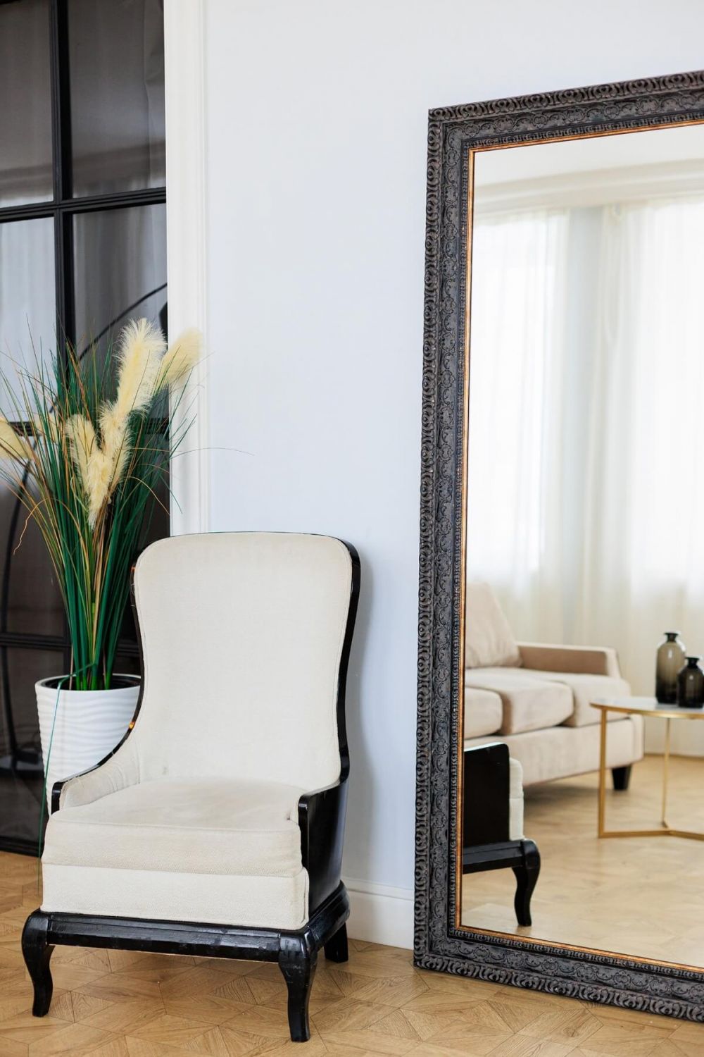 Дизайн и цвет: Элегантная черная рама — это беспроигрышный ход. Она добавляет интерьеру графичности и глубины, оставаясь при этом нейтральной и легко вписывающейся в любую концепцию — от строгой классики до лаконичного минимализма .