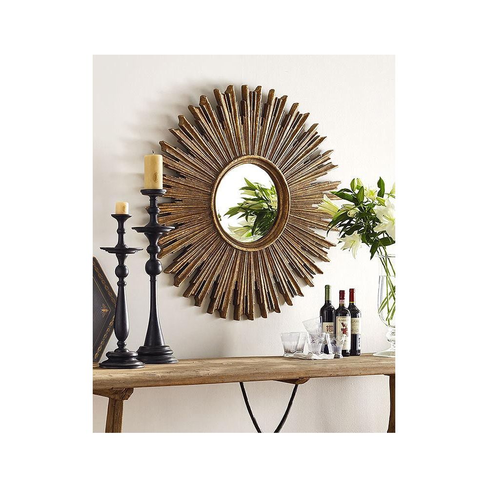 Зеркало солнце в золотой раме “Эллисон” – это сочетание изысканного дизайна и функциональности, созданное для того, чтобы украсить помещение и добавить ему стиля. Основным визуальным элементом зеркала “Эллисон” является его золотистая рама в виде лучей солнца, которая создает атмосферу тепла и уюта в любом помещении. Этот элемент дизайна делает зеркало идеальным выбором как для классических интерьеров, так и для современных стилей оформления. Благодаря своей универсальности, данное зеркало прекрасно впишется как в гостиную, прихожую, спальню, так и в другие помещения.