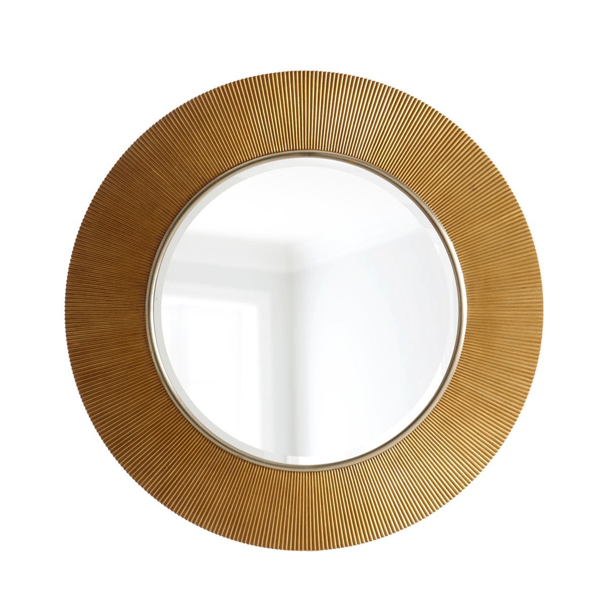Круглое зеркало в золотой раме “Арно” – это изысканный настенный декор, который привнесет особое очарование в любое помещение благодаря своему утонченному дизайну. Зеркало имеет круглую форму и украшено рамой, выполненной в виде лучей золотистого цвета, что создает эффект ярких солнечных лучей. Рифленая отделка рамы добавляет текстуры и интереса, придавая изделию дополнительного стиля. Отличительной чертой этого зеркала является возможность использовать его как функциональный предмет интерьера, а также как элемент декора, способный преобразить любое пространство. Оно великолепно дополнит интерьер вашего фойе, гостиной или спальни, придавая помещению элегантность и уют.