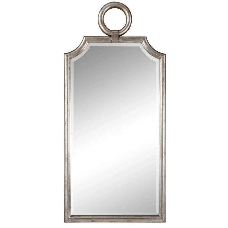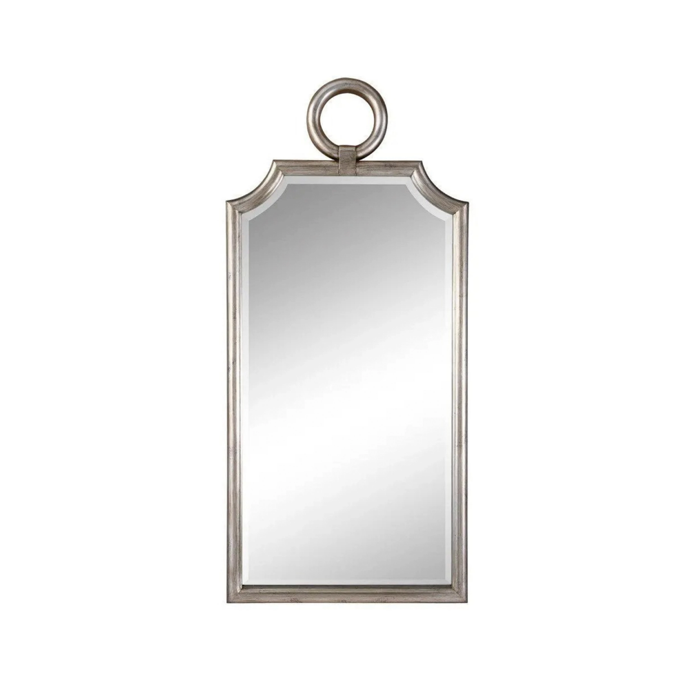 Серебряное настенное зеркало “Пьемонт” – выполнено в классическом стиле, одной из особенностей данного зеркала является его отделка из серебристой потали. Это создает благородный и неповторимый вид, который будет привлекать внимание и придаст вашей комнате особую атмосферу. Декоративная рама зеркала “Пьемонт” также заслуживает особого упоминания. Зеркало имеет прямоугольную форму, с углами зубчатой формы, но главная особенность “Пьемонта” – это верхняя часть зеркала в виде очаровательного кольца. Настенный декор “Пьемонт” идеально впишется в гостиную, спальню, прихожую или ванную комнату.