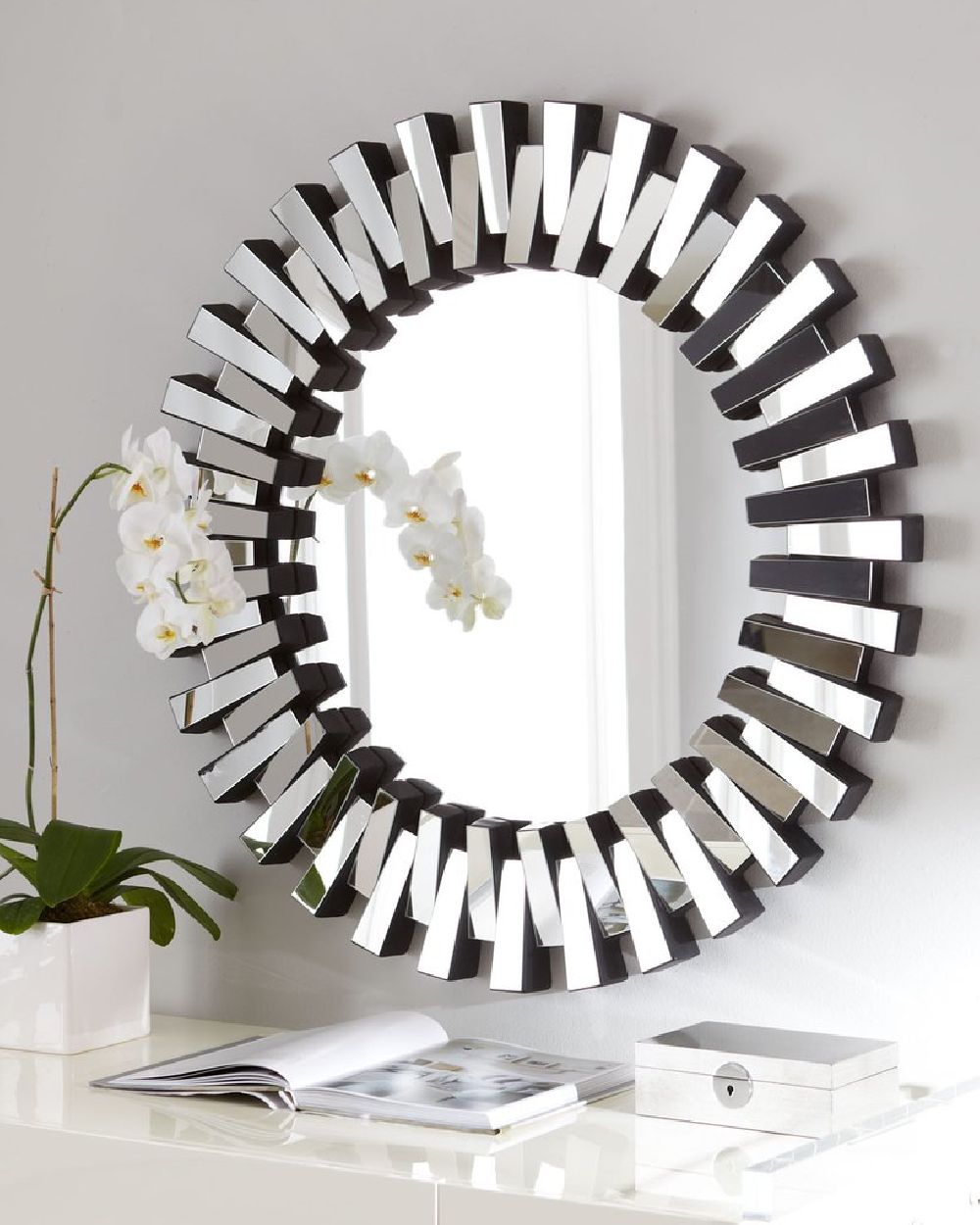 Круглое зеркало в зеркальной раме “Дориан” – это стильное дополнение к интерьеру вашего дома. Оно не только выполняет свою функцию – отражает, но и служит декоративным элементом, придавая помещению особый вид. Дизайн зеркала подчеркивает современные тенденции в интерьерном дизайне, а именно игру с формами и светом. Такой дизайн эффектно подчеркивает стильное оформление помещения и добавляет ему индивидуальности. Круглая форма зеркала символизирует гармонию и целостность, что делает его универсальным элементом декора для различных интерьеров. Зеркало “Дориан” идеально впишется как в гостиную, так и в спальню, прихожую.
