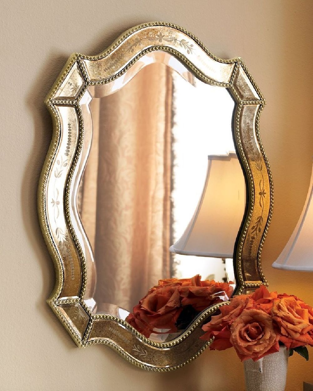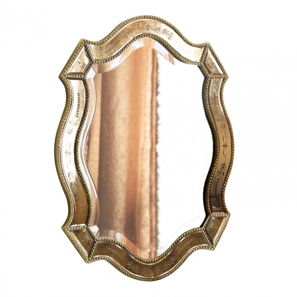 Настенное зеркало в раме “Стелла” – это изысканный настенный декор в венецианском стиле, который станет прекрасным дополнением для любого интерьера классическом стиле. Его форма в виде щита придает ему уникальность и оригинальность. Зеркало обладает зеркальной рамой с эффектом травления, что добавляет ему шика и элегантности. Этот особый эффект придает раме штрихи глубины и объемности, делая ее более привлекательной и привлекательной для взгляда. Кроме того, рама дополнительно украшена отделкой и бусинами в цвете “Шампань“. Благодаря этим деталям зеркало “Стелла” станет настоящим центром притяжения в любом помещении, привлекая взгляды и внимание всех!