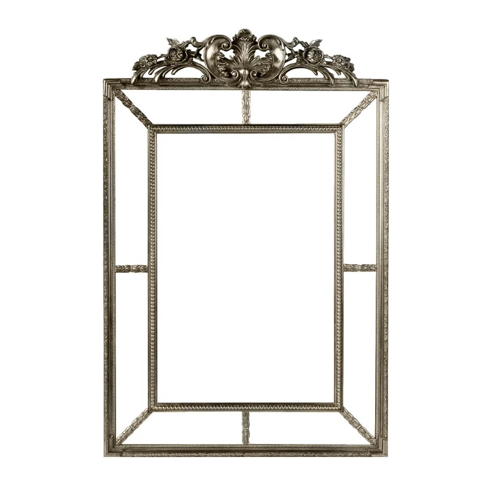 Зеркало в серебряной раме “Ланкастер” – это зеркало поражает своим великолепием, воплощая в себе стиль барокко с изысканным цветочным орнаментом сверху, который придает ему неповторимую изысканность, оно обязательно станет неотъемлемым элементом интерьера вашего дома. Размеры этого зеркала позволяют использовать его как элемент декора в различных помещениях – от гостиной до спальни, от прихожей до кабинета. Свойства зеркала “Ланкастер” не ограничиваются только визуальным воздействием – оно также отлично выполняет свою основную функцию, отражая и создавая ощущение простора в помещении. Рама в серебристом цвете, оформленная красивым узорчатым орнаментом, придает зеркалу роскошный и благородный вид. Простота формы, сочетающаяся с изысканным дизайном, делает это зеркало универсальным и стильным предметом интерьера, способным добавить элегантности в любое помещение.
