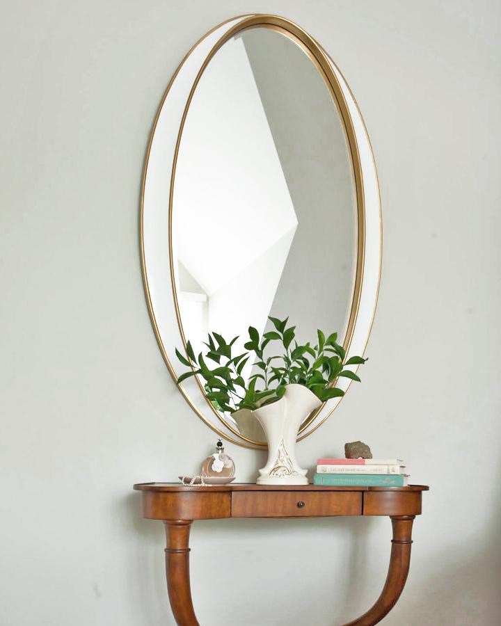 Овальное зеркало в белой раме “Дита” с золотым кантом отлично подчеркнет стиль вашей гостиной, настенное зеркало которое подойдет к любому интерьеру дома. Его овальная форма и стильный внешний вид будет легко сочетаются с другим декором в вашей комнате, а двойной золотой кант на раме делает настенное зеркало тоньше и позволяет визуально увеличить комнату. Овальное зеркало в белой раме можно разместить в прихожей или повесить над комодом в спальне. В зависимости от личных предпочтений и пространства на стене возможно выбрать монтаж в вертикальном или горизонтальном положении. Одна из основных причин, по которой наши клиенты выбирают настенные зеркала в белом цвете, заключается в том, что они желают добавить больше света в комнату — помимо отражения дневного света в комнату через зеркало, белая рама также помогает сделать интерьер светлее. Этот факт делает эти зеркала идеальными для больших помещений, которым не хватает света, а также для интерьеров, оформленных более темными тонами или краской – белые настенные зеркала блестяще выделяются на темных стенах.