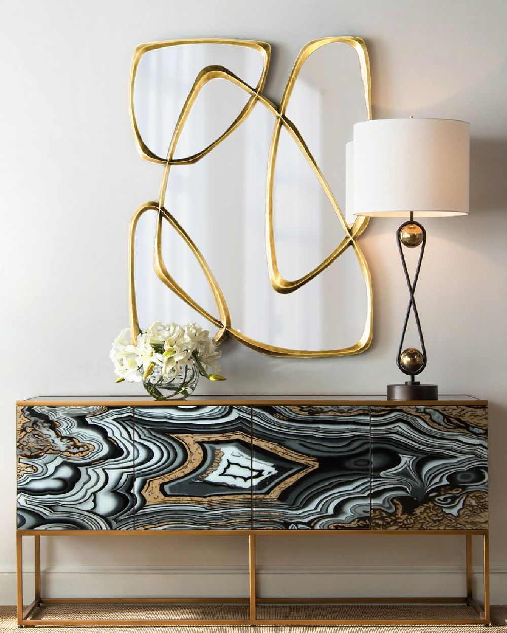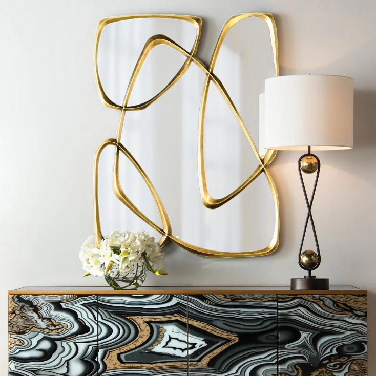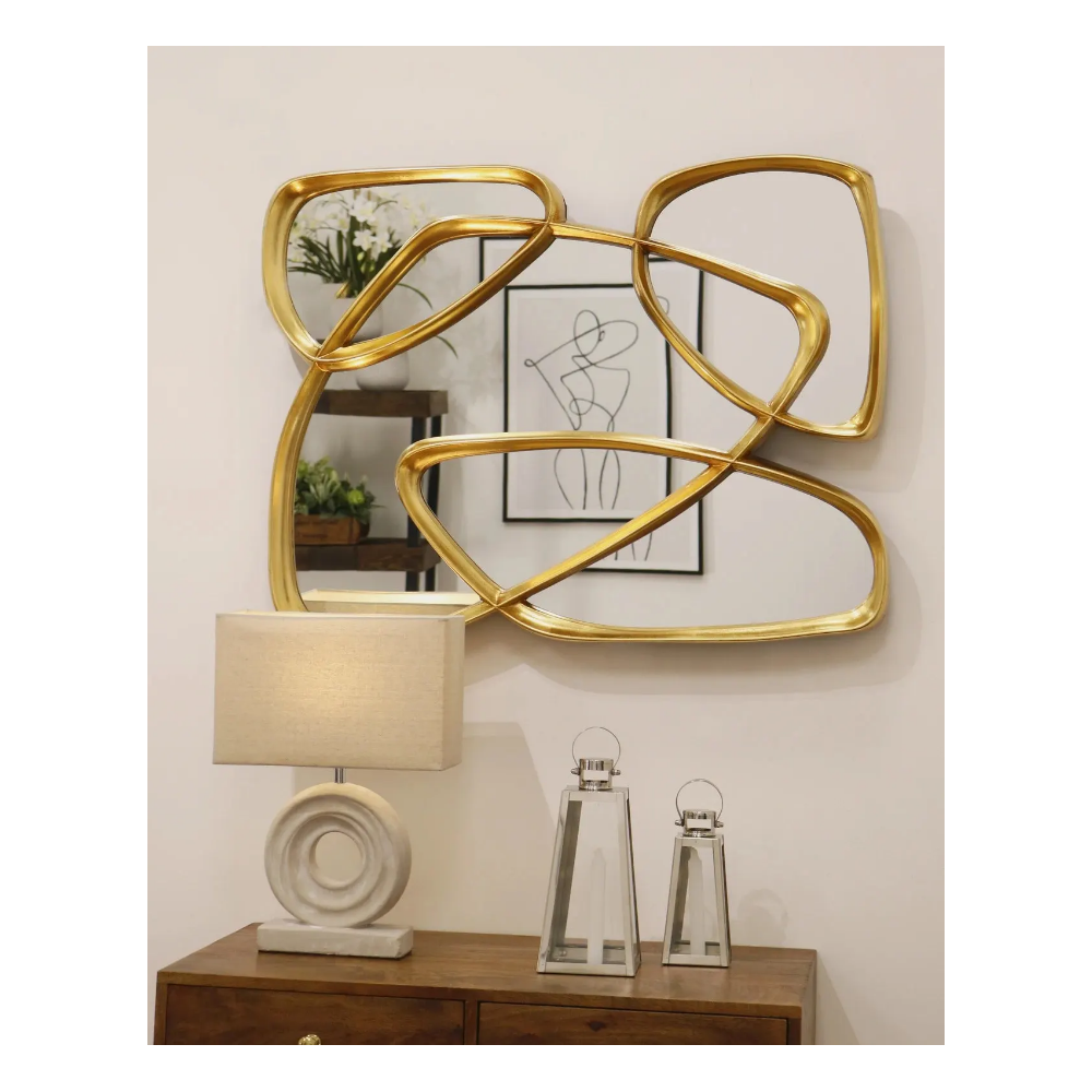 Золотое настенное зеркало “Луар” – это декор с большой ассиметричной рамой. Она выполнена в виде геометрического узора, который придает зеркалу необычный и современный вид. Это зеркало идеально подходит в качестве элемента декора для вашей прихожей. Его привлекательный дизайн станет настоящим акцентом в вашем современном пространстве. Оно подчеркнет стиль вашего интерьера и добавит в него изысканности. Оно будет отличным дополнением к вашему интерьеру и станет незаменимым атрибутом в вашей прихожей!
