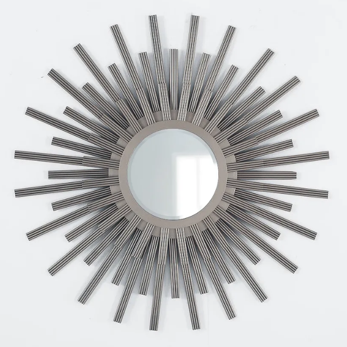 Зеркало в серебряной раме “Бертран” – это настенный декор в форме солнца, также известное как санбёрст. Рама зеркала выполнена из металла, который имеет отделку в серебристом цвете. Этот дизайн подойдет как для современных, так и для классических интерьеров, придавая им изысканность и шарм. Форма солнца добавляет в помещение стиль и уют, делая его более живым и интересным. Это зеркало не только отражает окружающее пространство, но и является стильным элементом декора. Оно прекрасно впишется в гостиную, спальню, прихожую или другое помещение, придавая ему утонченность и уникальный акцент. С его помощью можно сделать скучную стену ярким и привлекательным центром внимания.