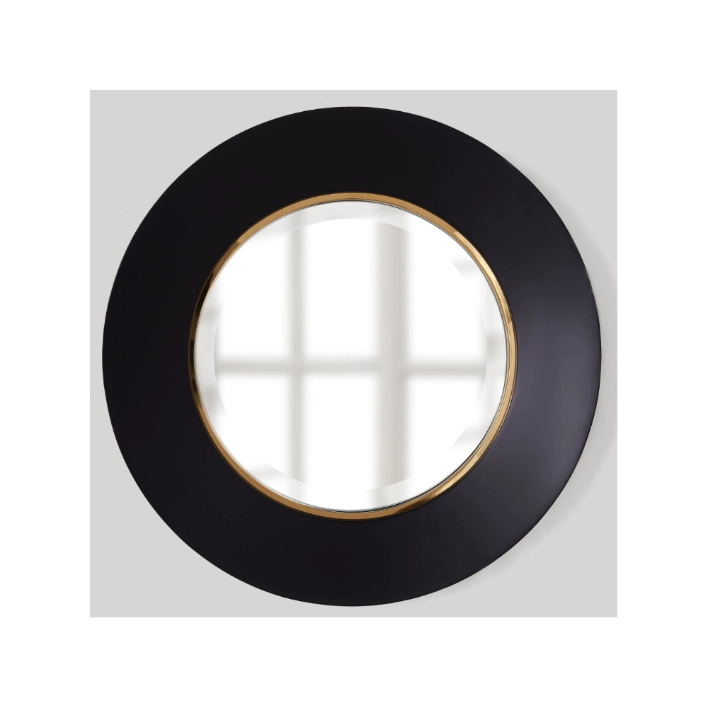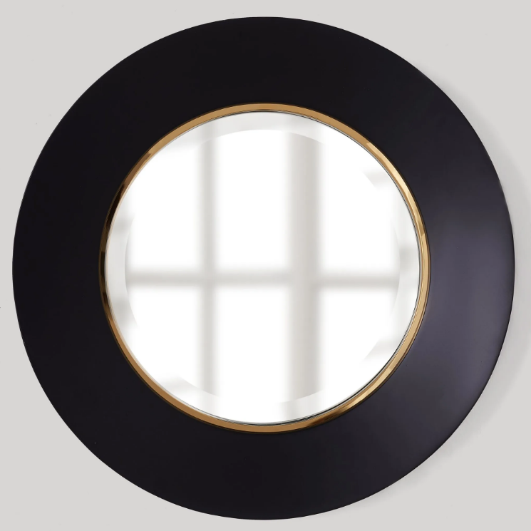 Чёрное настенное зеркало “Портердейл” – это зеркало выполнено в форме круга и имеет изящную черную раму, которая приковывает взгляд своим оригинальным исполнением – слегка вогнутой внутрь. Такое решение придает зеркалу особую глубину и загадочность, делая его не просто функциональным предметом интерьера, но и стильным акцентом. Особенностью этого зеркала является золотая глянцевая металлическая нить, которая проходит между рамой и отражающим полотном. Эта нить имеет круговой узор, который дополняет общий дизайн рамы и соединяет все элементы в единое целое. “Портердейл” не только выполняет привычную функцию отражения, но и становится центральным элементом декора помещения. Его элегантный дизайн и изысканная отделка делают его универсальным элементом для любого стиля интерьера. Он может стать центральным акцентом в гостиной, спальне, прихожей или любом другом помещении, привнося в него ноту роскоши и изыска.