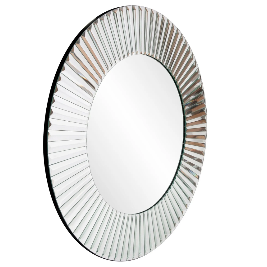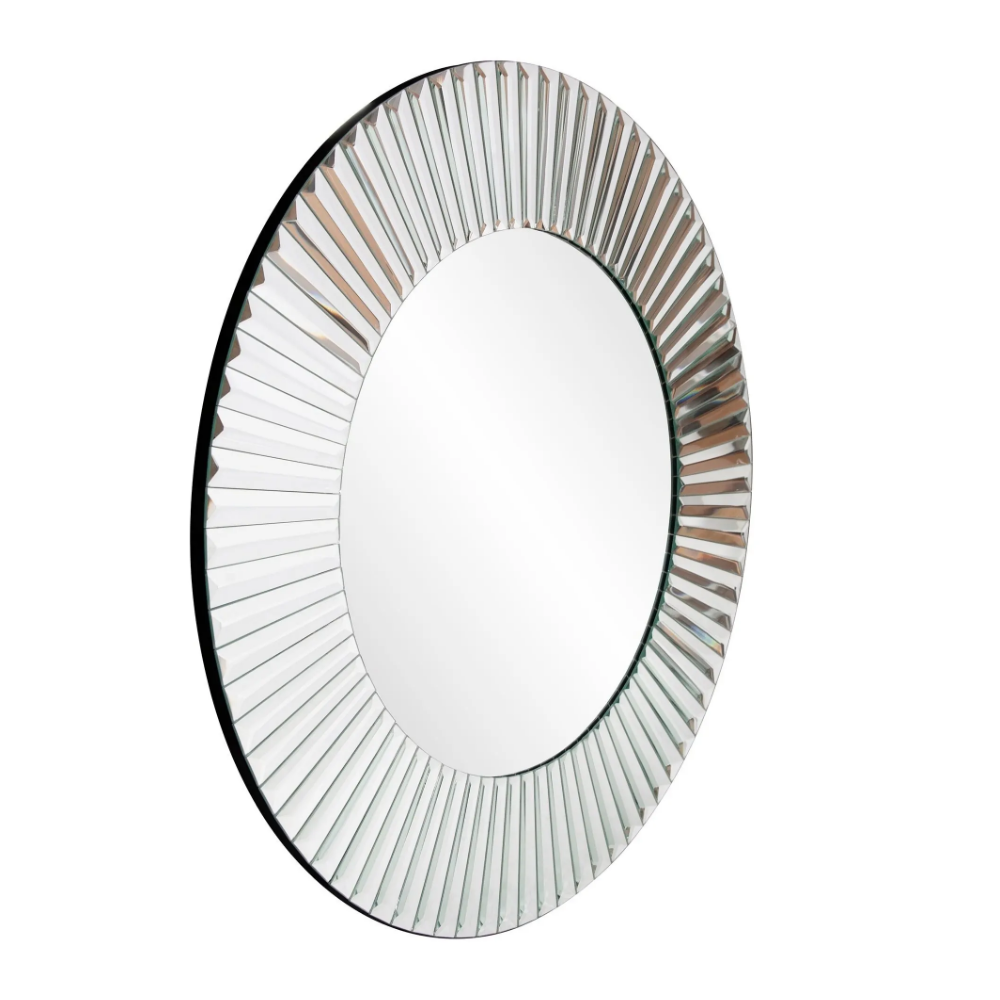 Зеркало в круглой зеркальной раме “Теодор” – это зеркало отличается своим уникальным дизайном, который привлечет взгляды и добавит стиля любому помещению. Зеркало обладает необычной рамой, состоящей из маленьких прямоугольных зеркальных полос, которые обрамляют весь периметр зеркала. Эти полосы не только создают уникальный визуальный эффект, но и прекрасно ловят свет, отражая его по всей комнате. Благодаря такому дизайну, зеркало “Теодор” станет не просто функциональным предметом, но и стильным акцентом в любом интерьере. Размеры зеркала позволяют использовать его как в гостиной, спальне, прихожей или в ванной комнате. Оно прекрасно впишется как в современный, так и в классический стиль декора благодаря своей универсальности и изысканности.