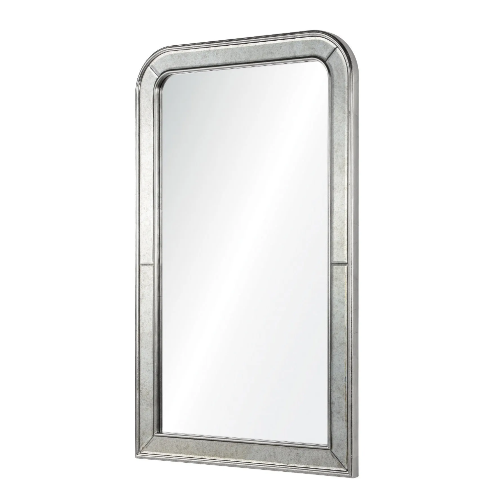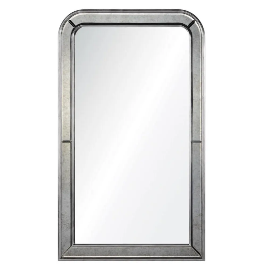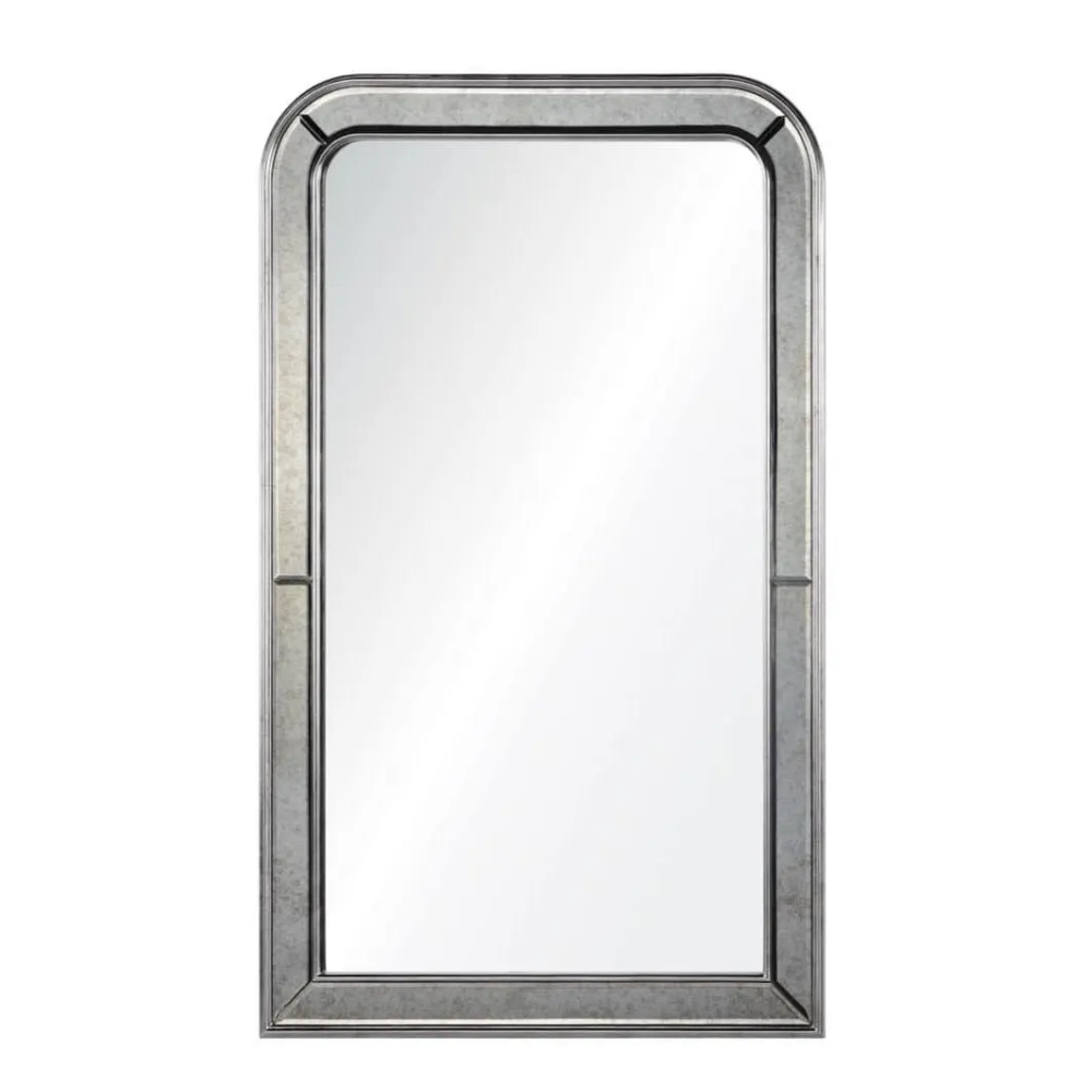 Зеркало в серебряной раме “Гийом” – это превосходное сочетание классического и современного дизайна. Одной из выдающихся черт этого зеркала является его арочная форма. Округлый верх зеркала естественным образом переходит в простое прямоугольное дно, что создает интересный и привлекательный визуальный силуэт. Рама серебряного цвета обрамляет основное отражающее полотно, придавая ему привлекательность. Зеркала по периметру рамы выполнены в технике травления, что создает эффект искусственного состаривания. Оно идеально подходит для использования в различных помещениях вашего дома или офиса. Будь то гостиная, спальня или ванная комната, оно будет отлично сочетаться с любым стилем интерьера и станет прекрасным дополнением к вашему декору.