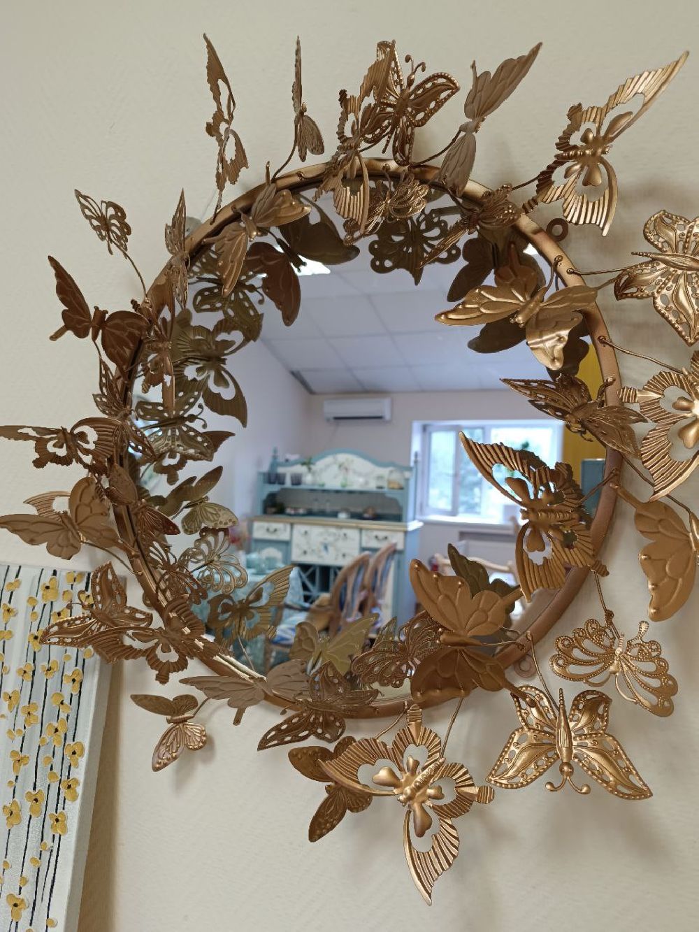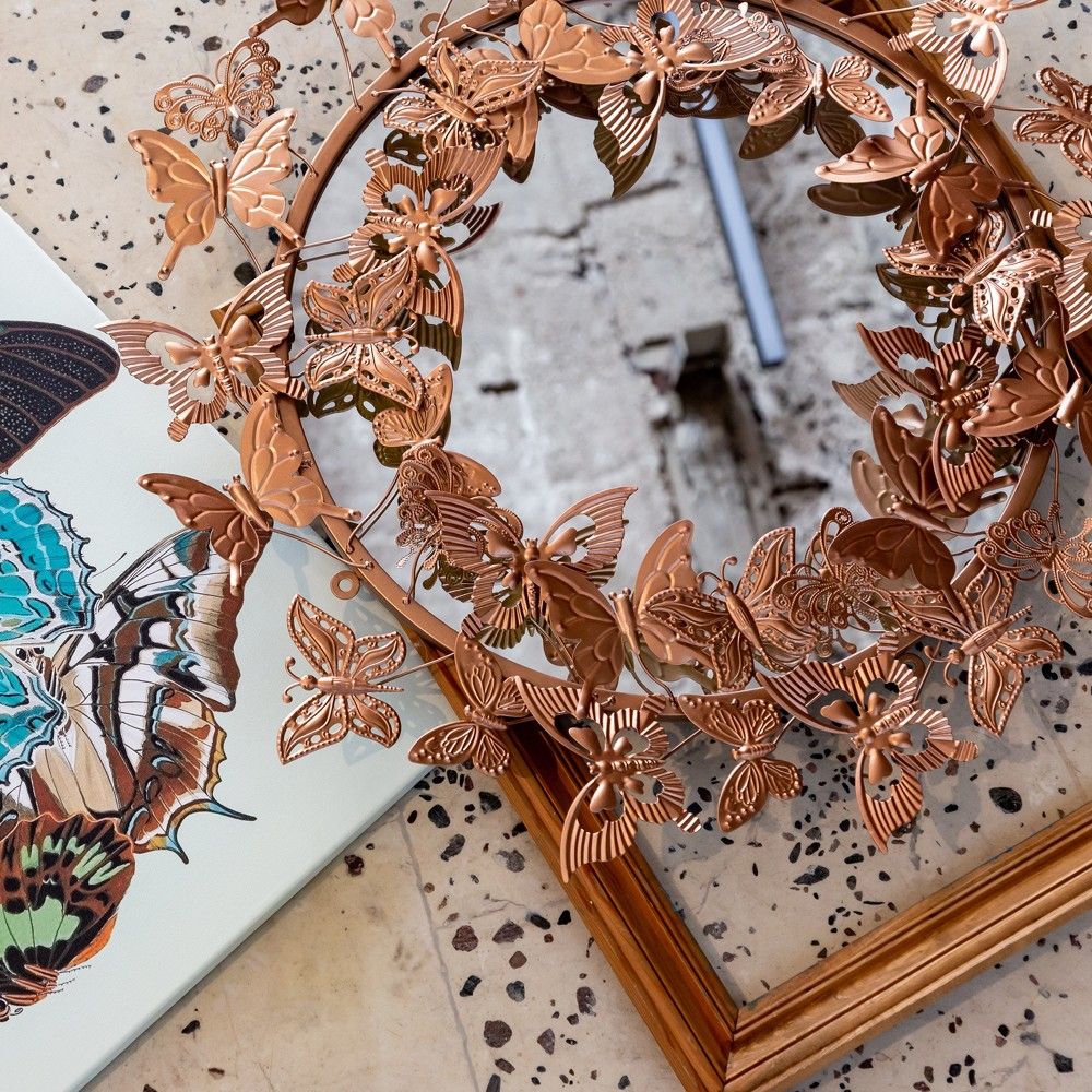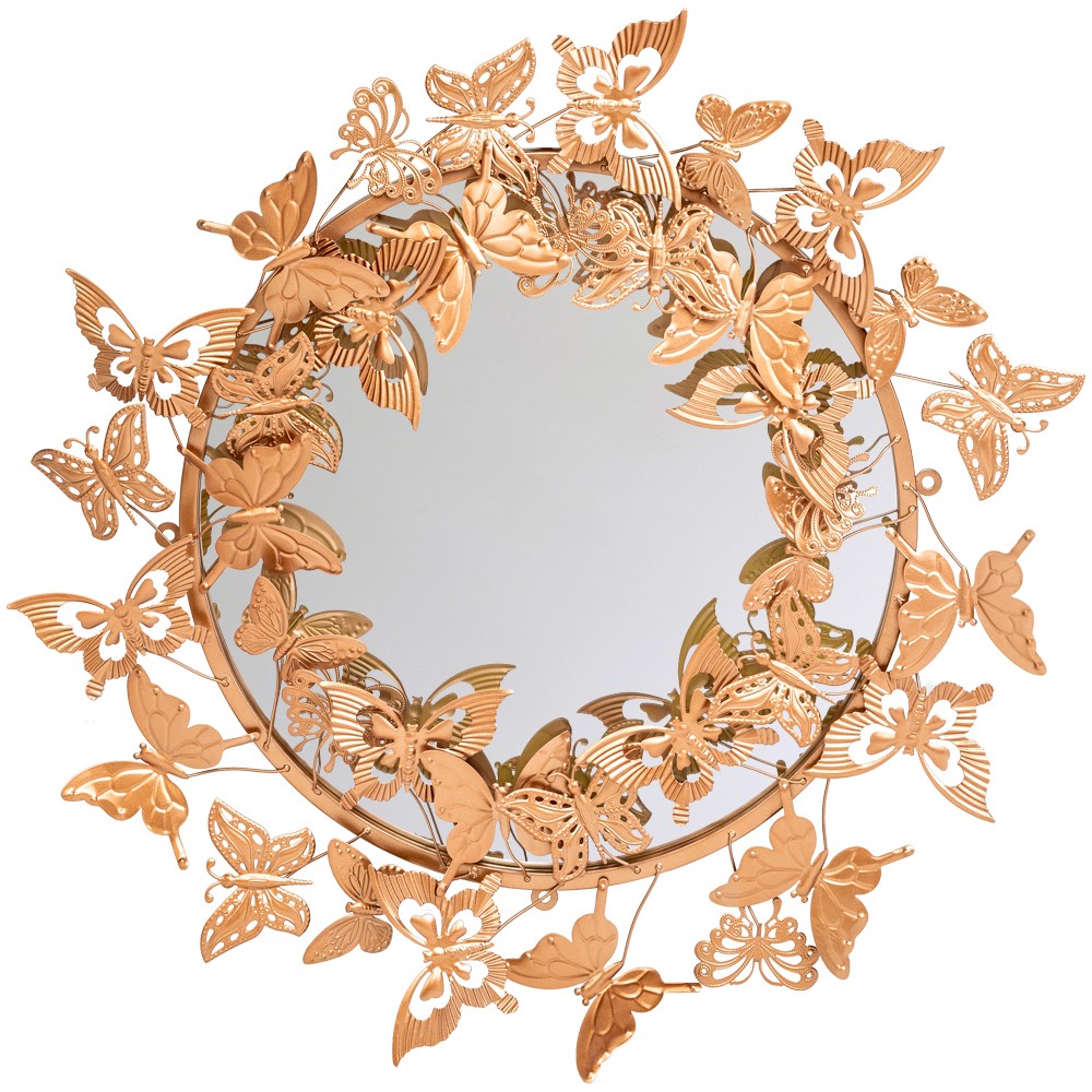 Зеркало «Гвендолин» — это уникальный арт-объект, который наполняет пространство особым смыслом и светом. Его эксклюзивность заключается в изысканном декоре из 37 бабочек золотого оттенка — древнего символа радости, счастья и любви. Каждая бабочка привносит в интерьер ощущение легкости, безмятежности и гармонии, превращая обычное отражение в источник вдохновения и позитивного настроения. Этот дизайн, вдохновленный природой, создает эффект порхающего света, делая комнату визуально больше и воздушнее.