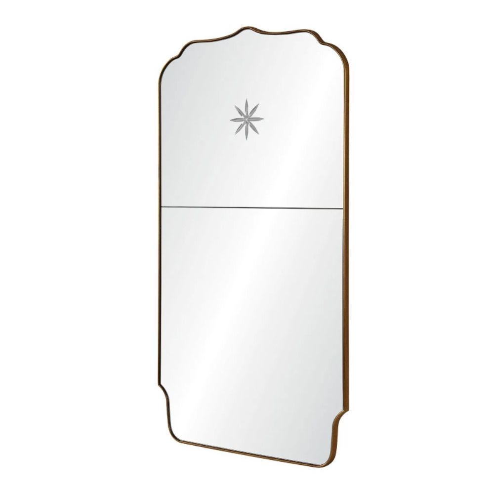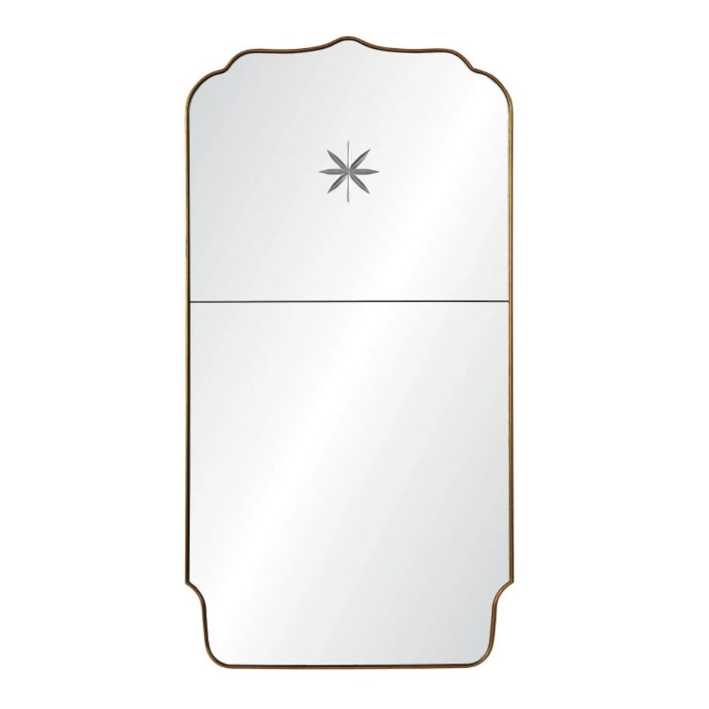 Золотое настенное зеркало “Тартюф” – это изысканное дополнение к вашей комнате, которое привнесет элегантности и стиля. Это настенное зеркало имеет тонкую раму латунного цвета, которая добавляет дополнительную привлекательность к этому уникальному предмету интерьера. Особенностью этого зеркала является выгравированная звезда в верхней части зеркала, которая придает ему уникальную особенность. Эта деталь делает этот предмет интерьера еще более привлекательным для глаза. Зеркала настенного типа являются важным элементом во многих домах, и это зеркало “Тартюф” обновляет классический стиль “трюмо” в свежий и современный взгляд. Оно совмещает в себе классическую элегантность и современные акценты, чтобы создать уникальную и привлекательную атмосферу в вашем доме. Зеркалом “Тартюф” станет прекрасным украшением вашей спальни, гостиной, ванной или прихожей. Зеркало “Тартюф” идеально сочетается со многими стилями интерьера, будь то классический или современный. Его нежная рама латунного цвета и изысканное зеркало подарят вашему интерьеру утонченность и стиль.