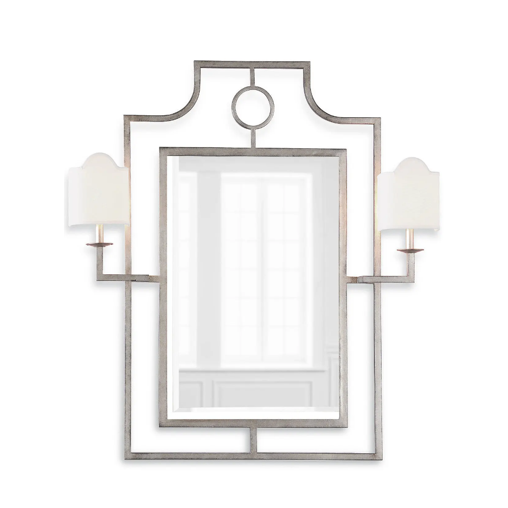 Серебряное настенное зеркало “Эван” с бра – это изысканное и стильное дополнение к вашему интерьеру. Сочетание зеркала и бра делает его универсальным и позволяет использовать его в разных помещениях вашего дома. Одно изготовлено из метала с серебряной отделкой, что придает ему благородный вид. Основная рама зеркала выполнена в классическом итальянском стиле, что добавляет ему особого шарма и стиля. Зеркало “Эван” идеально подойдет для украшения ванной комнаты, если у вас есть консоль в прихожей, то зеркало “Эван” идеально расположится над ней. Сделайте Ваш интерьер еще более роскошным с помощью этого настенного зеркала.