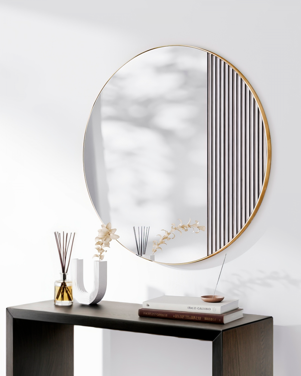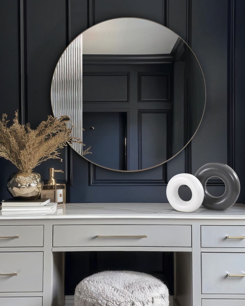 Круглое зеркало в раме “Нолан” – M – это зеркало обладает прекрасным дизайном, который сразу бросается в глаза благодаря своей изысканной отделке из волнистых отражающих панелей по краю рамы. Этот элемент декора создает уникальную игру света, добавляя комнате элегантности и стиля. Его дизайн и детали позволяют сочетать его с интерьерами в современном стиле или стиле ар-деко. Благодаря своей универсальности, оно легко впишется в любое помещение, придавая ему изысканности и роскоши. Это зеркало не только украсит Вашу комнату, но и поможет визуально расширить пространство, создавая ощущение легкости и простора.