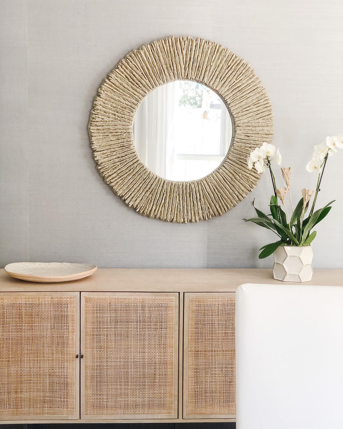 Дизайн круглой рамы зеркала “Триша” вдохновлён текстурой натурального сланцевого камня. Диаметр зеркала вместе с рамой составляет – Ø 91,5 см., что позволит использовать его как элемент декора в любой комнате – будь то гостиная, спальня или ванная комната. Зеркало “Триша” добавит уникальность и объем в ваш интерьер, создавая комфортную и уютную атмосферу в доме.