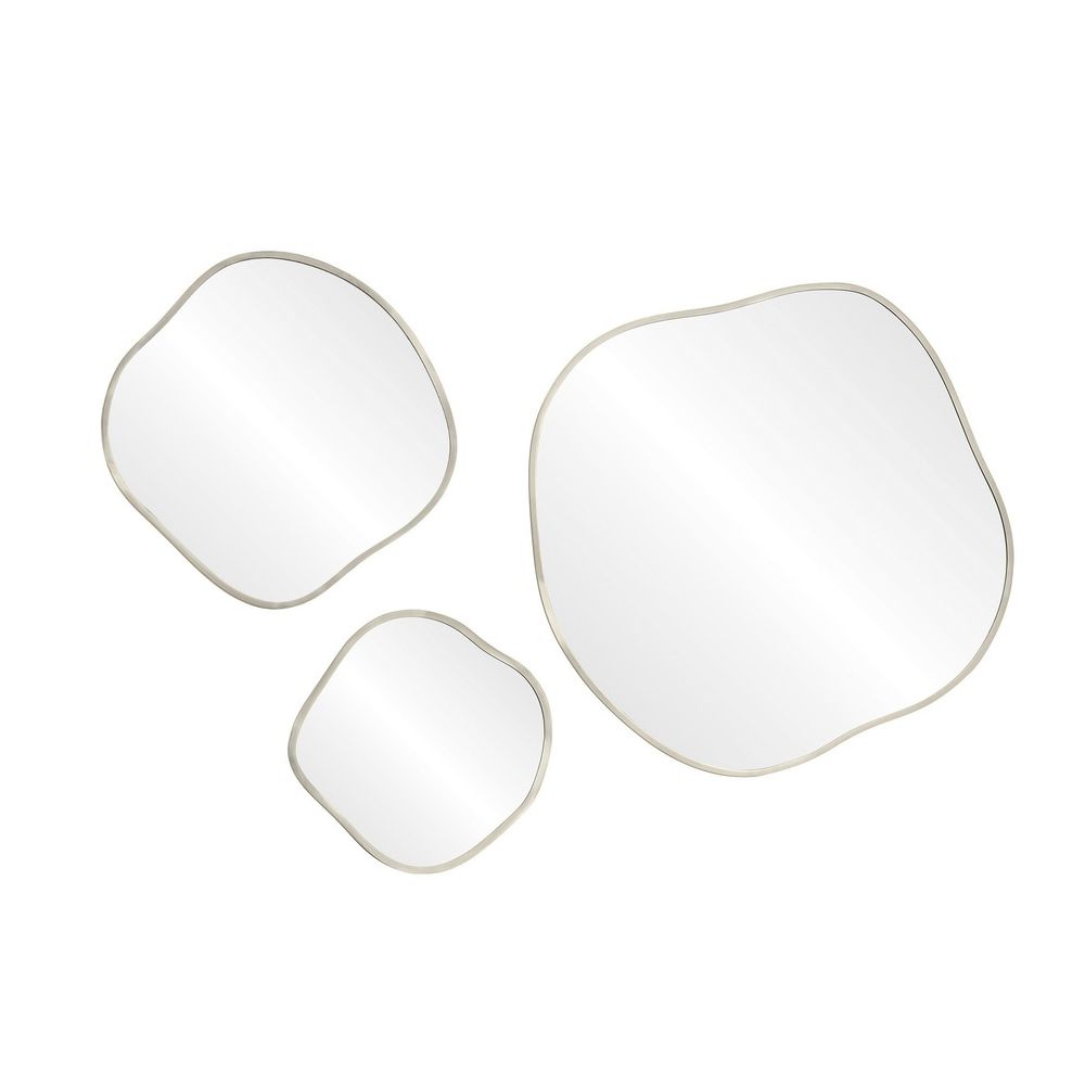 Набор из трех зеркал Organic в серебряной раме — это готовое архитектурное решение. Здесь все уже продумано: три размера ( 91, 61 и 41 см ) подчиняются единой логике, а плавная, фигурная форма каждого элемента перекликается с остальными, создавая ощущение цельного панно.