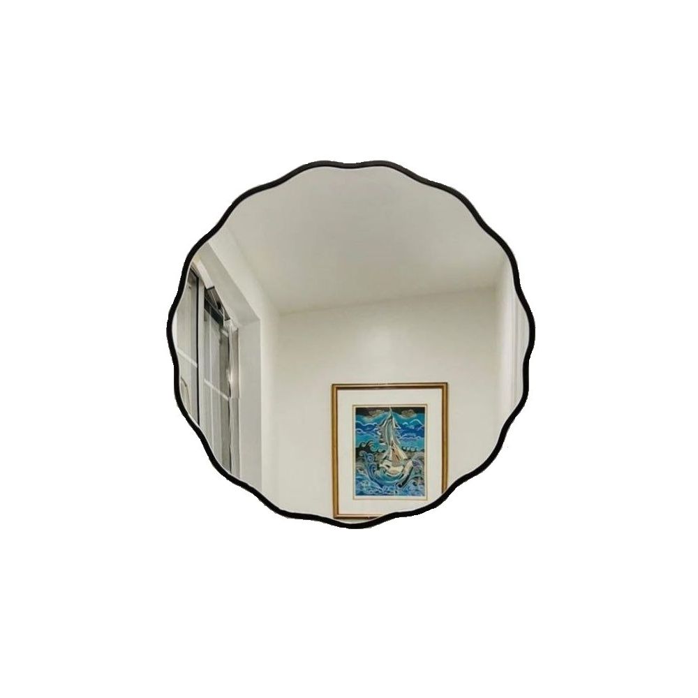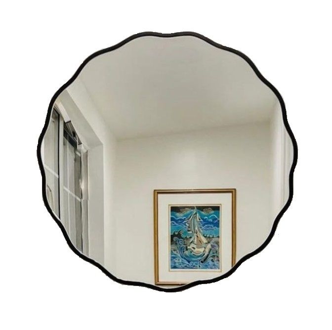 Влагостойкое серебряное зеркало – это не только четкое отражение, но и устойчивость к перепадам влажности. Тонкая деревянная рама, покрытая матовой черной краской, добавляет предмету графичности, оставаясь визуально легкой. Фигурная форма делает каждое зеркало уникальным. Возможность заказа других размеров позволяет адаптировать его под любое пространство.