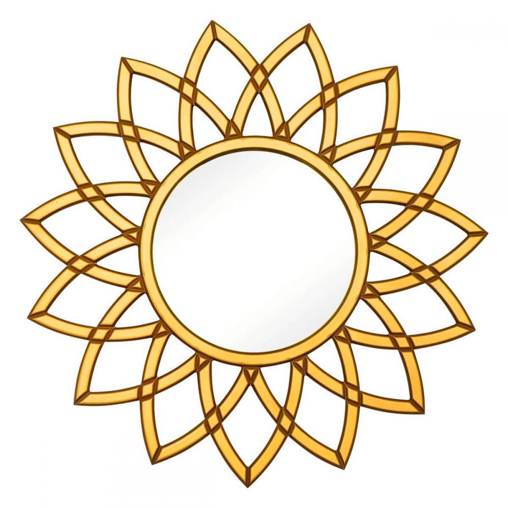 Материалы и отделка: Рама изготовлена из высокопрочного МДФ с глянцевым зеркальным покрытием золотого цвета. Полотно — классическое зеркало.