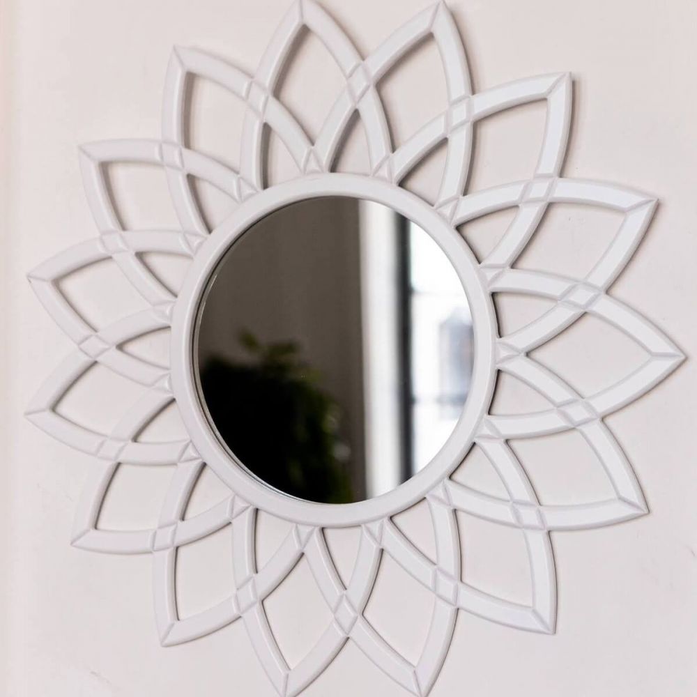 Осветите пространство стильным акцентом. Зеркало Shiny White из коллекции BountyHome — это круглое настенное зеркало в уникальной зеркальной раме, выполненной в чистом белом цвете. Его дизайн с лучами-лепестками напоминает стилизованное солнце, создавая в интерьере эффектную фокусную точку. Это идеальное решение для тех, кто хочет добавить в обстановку легкости, объема и современной эстетики.
