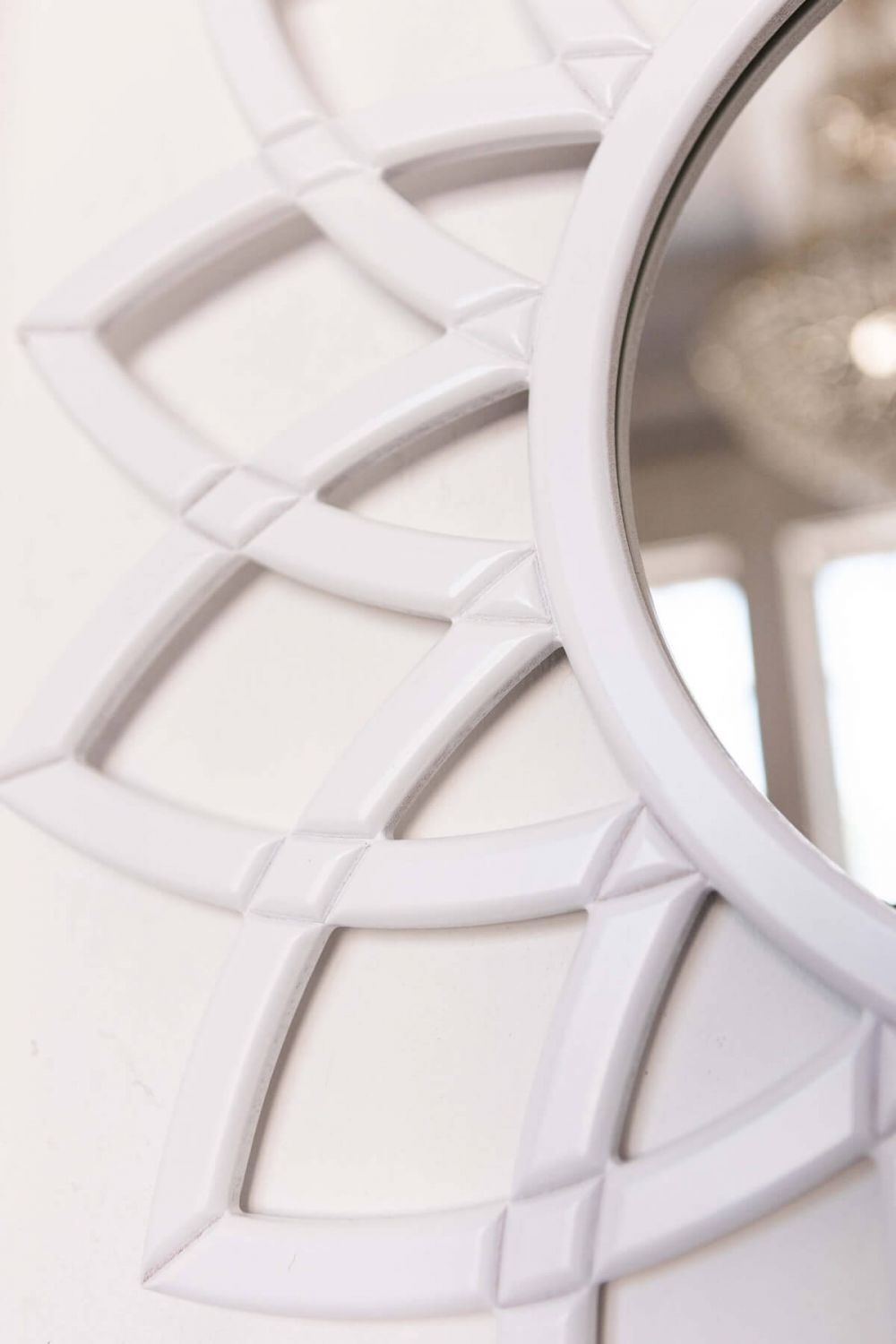 Эффект света и простора. Белая зеркальная рама идеально отражает и рассеивает свет, наполняя помещение ощущением воздушности и визуально расширяя его границы.