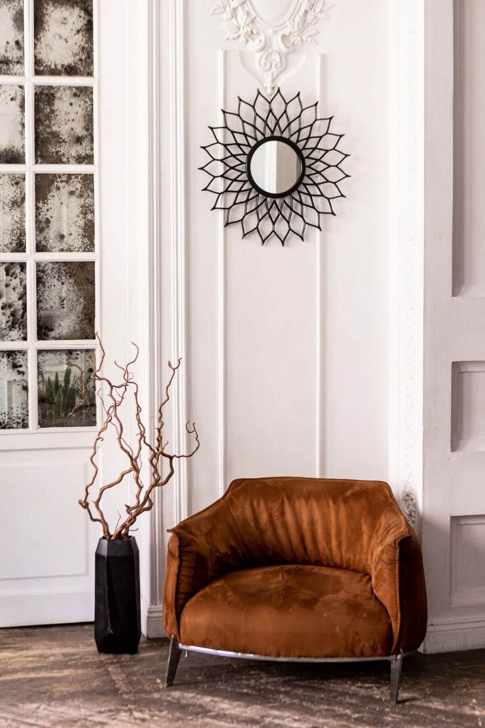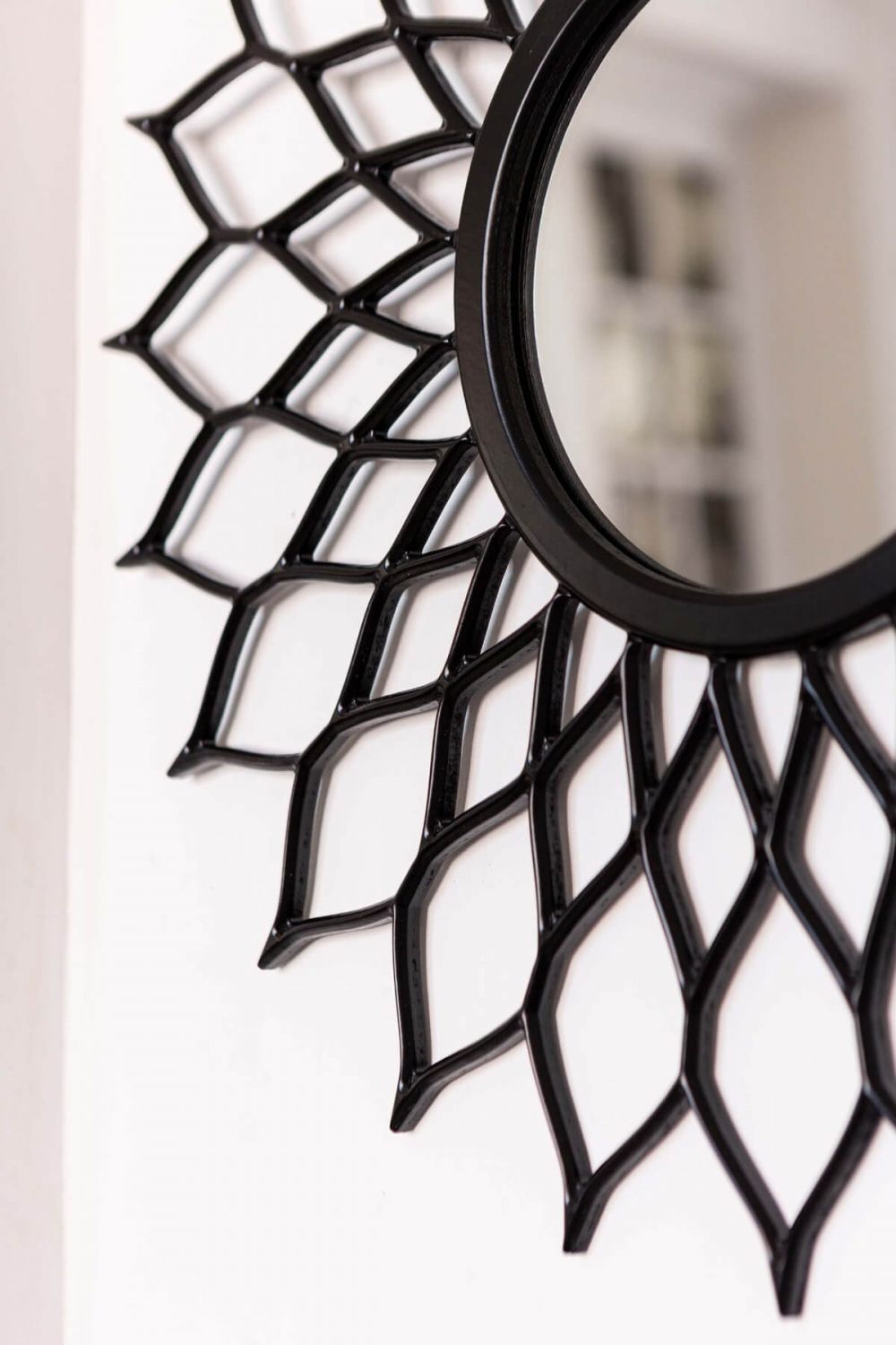 Визуальное расширение пространства. Круглая форма и контрастная рама создают оптическую иллюзию, «раздвигая» стены и добавляя помещению глубины и объема.