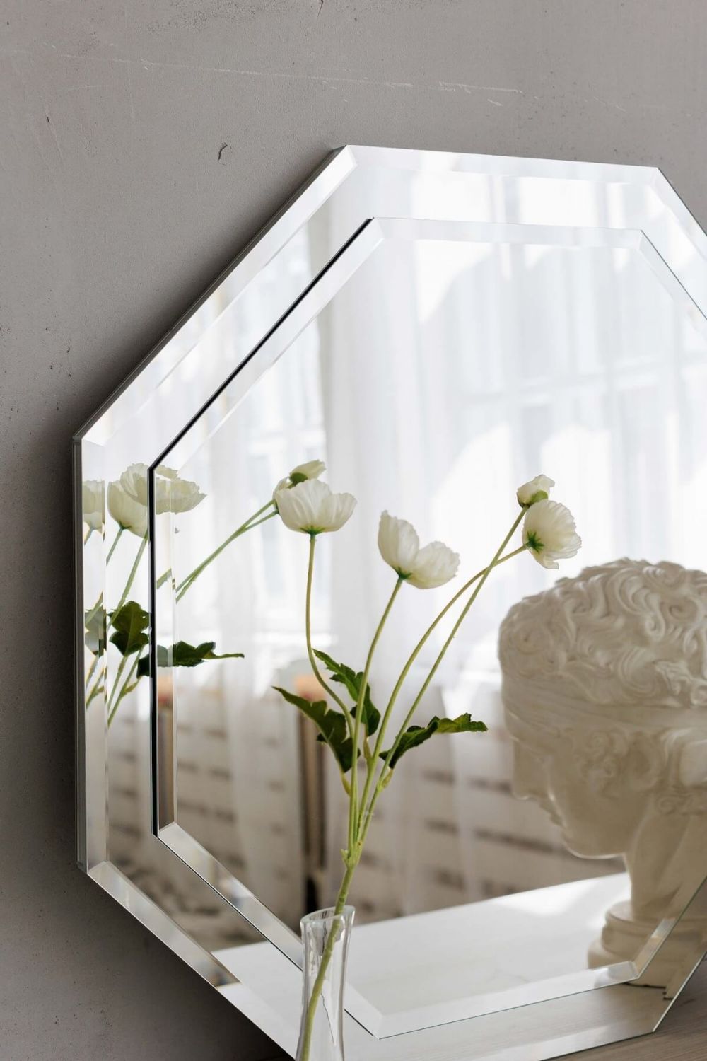 Зеркало Moro — это больше, чем просто зеркало. Это арт-объект, играющий со светом и пространством, созданный для тех, кто ценит эстетику и внимание к деталям. Каждый угол его восьмиугольной формы украшен изысканным фацетом — специальной огранкой кромки стекла . Подобно грани бриллианта, фацет особым образом преломляет свет, создавая вокруг зеркала завораживающую игру солнечных зайчиков и живых бликов. Это делает его не просто функциональным предметом, а самостоятельным источником света и центром притяжения взглядов в любом интерьере.