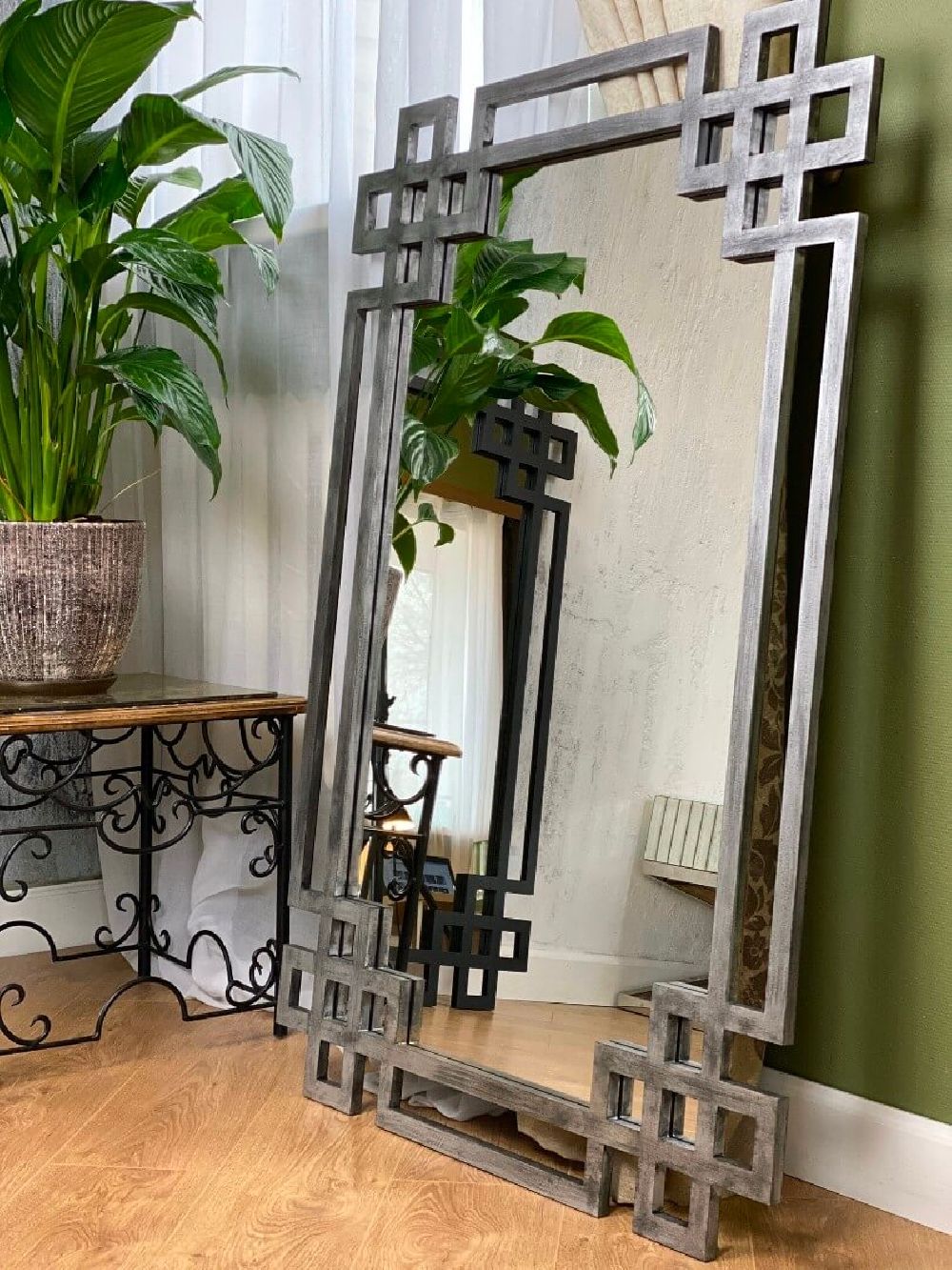 Это зеркало безупречно впишется в самые разные пространства. Его вертикальный формат 83 x 125 см идеально подходит для гостиной, парадной прихожей или спальни, визуально поднимая потолки и наполняя комнату светом. Классический серебряный цвет с элементами арт-деко делает его универсальным акцентом.