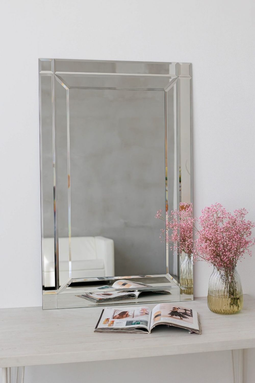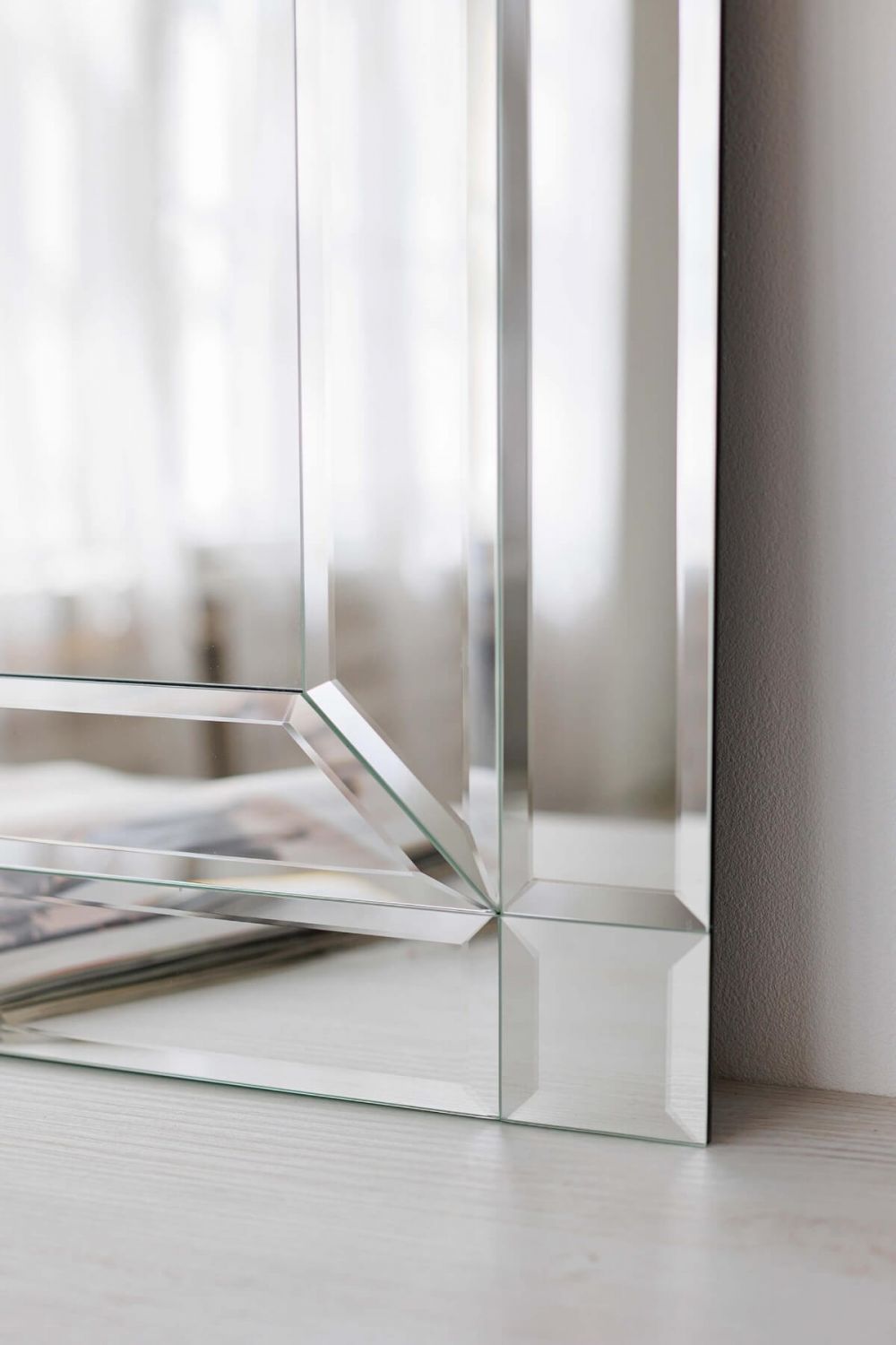 Фацетированная кромка: Качественное зеркало с обработанной фацетированной кромкой придает изделию изысканность и роскошный блеск, преломляя свет.