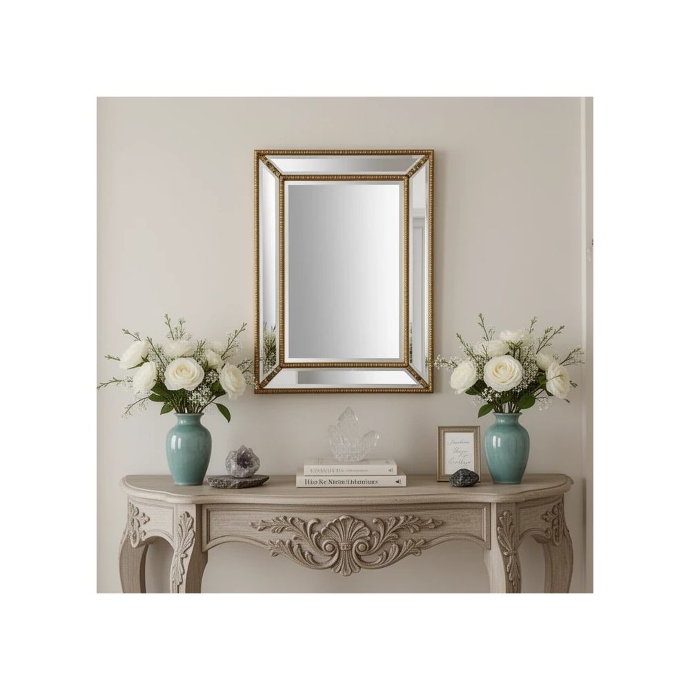 Зеркало Leon Gold — это именно такой антикварный акцент. Его рама цвета поталь античное золото имеет благородный, приглушенный блеск с легкой патиной. Размер 90×120 см делает его центральным элементом гостиной, спальни или прихожей. А широкий фацет 20/10 мм добавляет драгоценного сияния, усиливая ощущение старины и роскоши.