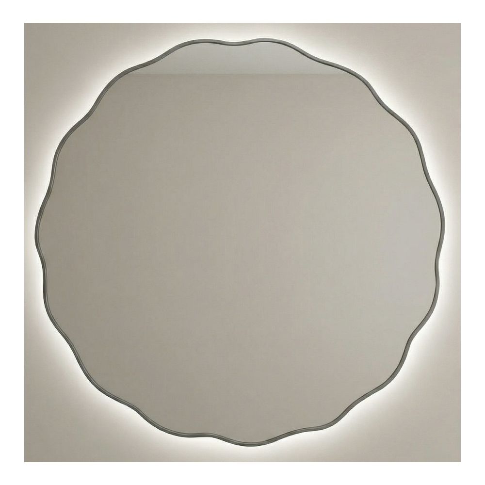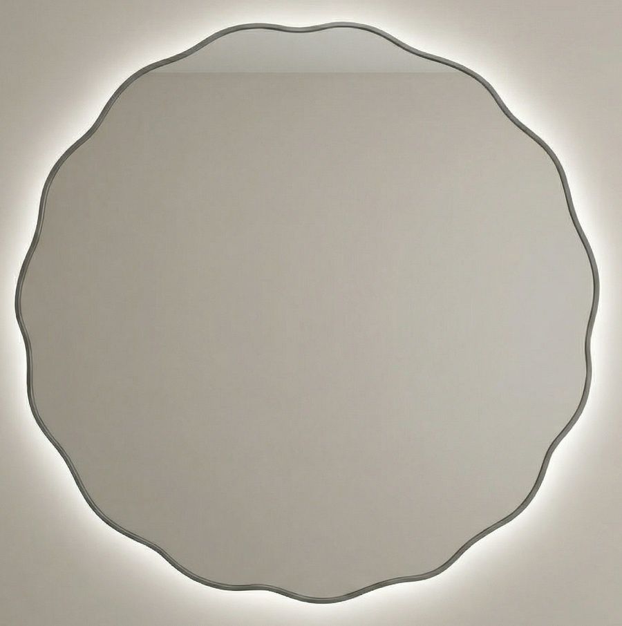 Вы ищете большое зеркало с характером — не просто круг, а фигурную форму, которая привлекает внимание. Диаметр около метра, чтобы стать центральным акцентом в гостиной или над туалетным столиком. И обязательно с подсветкой. Но золото кажется слишком тёплым — хочется холодного, сдержанного серебра. Проблема в том, что крупные дизайнерские зеркала с подсветкой в серебряном исполнении — редкость.