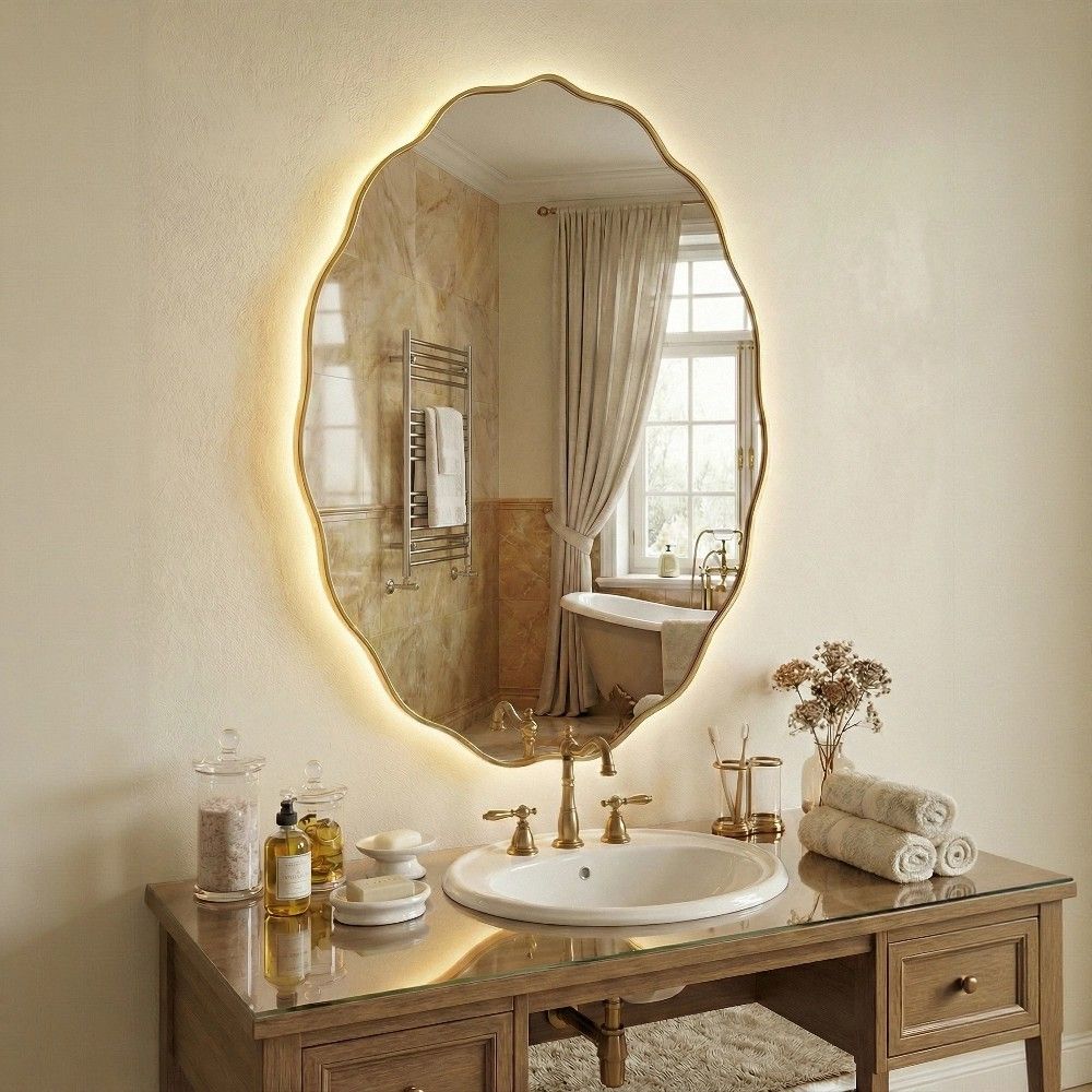 Вы ищете зеркало не круглое и не прямоугольное, а овальное — более мягкое, изящное, женственное. С фигурными волнообразными краями, чтобы оно выделялось среди стандартных моделей. И обязательно с подсветкой для макияжа или бритья. Проблема в том, что овальные зеркала с дизайнерской формой и встроенным светом встречаются редко. А если и встречаются — чаще всего их нельзя повесить вертикально или горизонтально по вашему желанию.