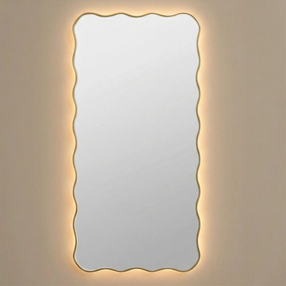 Вы ищете зеркало в полный рост или чуть меньше — около 120 см в высоту. Чтобы оно помогало оценить образ целиком в прихожей или в спальне. Но обычные прямоугольные зеркала скучны — хочется фигурных, волнообразных краёв, которые делают зеркало арт-объектом. Плюс обязательно подсветка. Проблема в том, что найти крупное дизайнерское зеркало с подсветкой, которое можно повесить и вертикально, и горизонтально, — непросто.