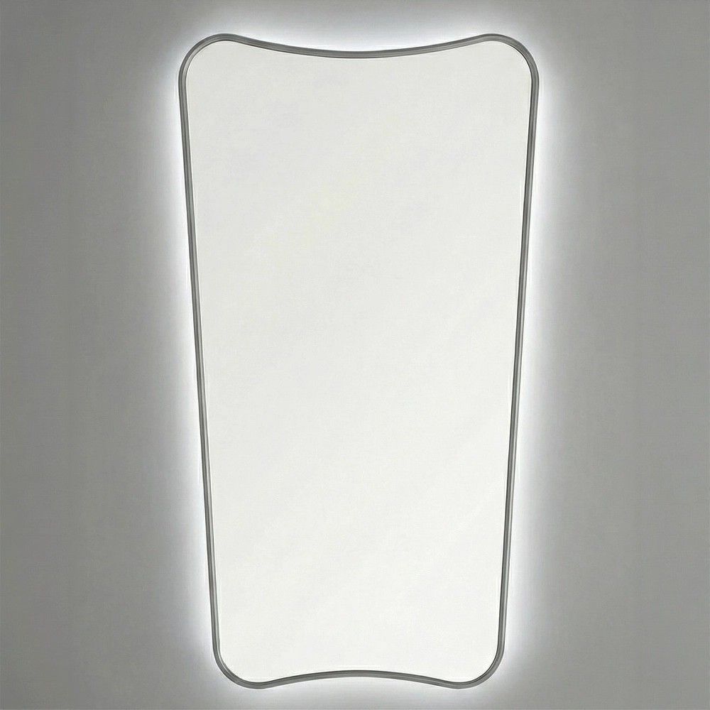 Высокое фигурное зеркало Sky L с серебряной деревянной рамой и COB подсветкой. Влагостойкое, 3000K-6000K. Полный рост. Доставка по РФ.