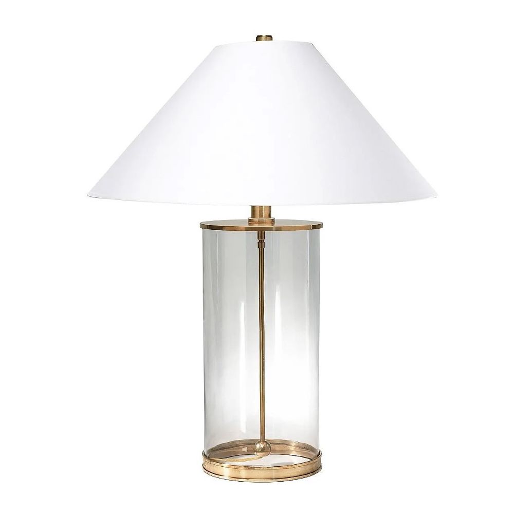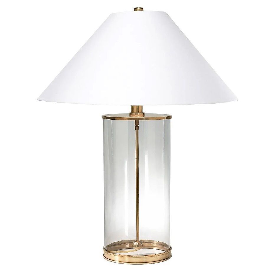 Настольная лампа “Сандерс” отличается изысканным и одновременно оригинальным дизайном. Светильник идеально впишется в любой интерьер в стиле неоклассицизм, минимализм, модерн, скандинавский стиль и др. Белоснежный абажур треугольной формы выполнен из 100% хлопка. Благодаря плафону в форме конуса, увеличивается площадь освещения. Основание сделано из прозрачного стекла в виде тубуса. Все элементы осветительного прибора надёжно скреплены между собой стальной арматурой.