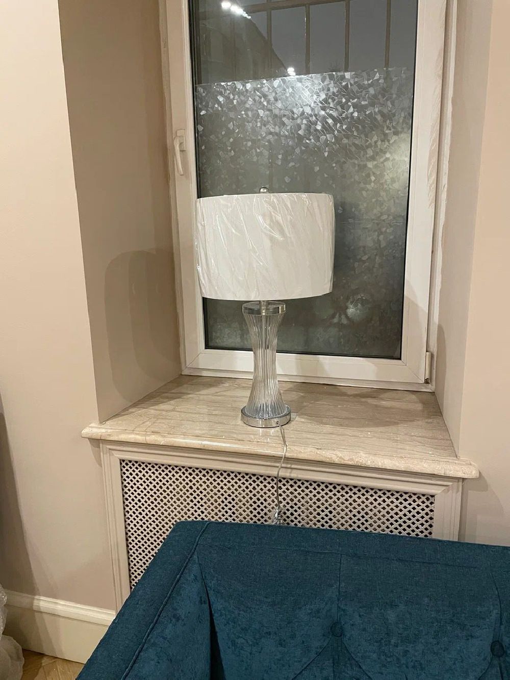 Простота в уходе: Для поддержания чистоты стеклянное основание достаточно протирать мягкой влажной тканью, а текстильный абажур можно аккуратно чистить пылесосом с мягкой насадкой .