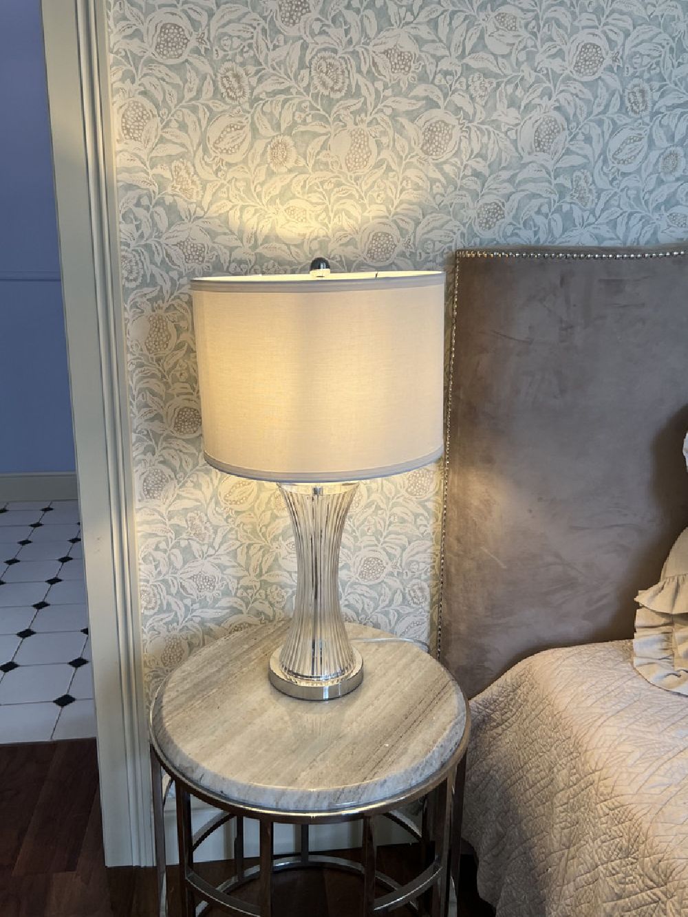 Качественные материалы: Комбинация стекла, хромированного металла и натурального хлопка обеспечивает лампе не только эстетически приятный вид, но и прочность, а также долговечность .