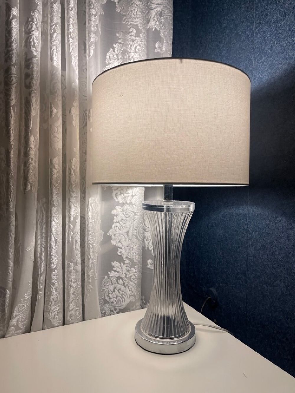 Настольная лампа «Наоми» – это воплощение элегантности и стиля для вашего интерьера. Ее утонченный дизайн с хрустальным рифленым основанием в форме песочных часов и белоснежным хлопковым абажуром создает приятную и уютную атмосферу, делая лампу идеальным выбором для современной гостиной, спальни или кабинета.