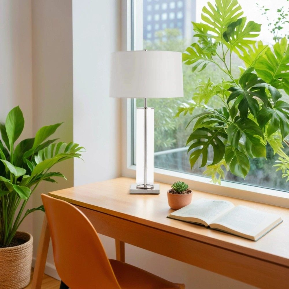 Современный дизайн: Серебряное металлическое основание в сочетании с белым хлопковым абажуром делает лампу универсальным элементом для современных интерьеров, гостиных, спален и кабинетов .