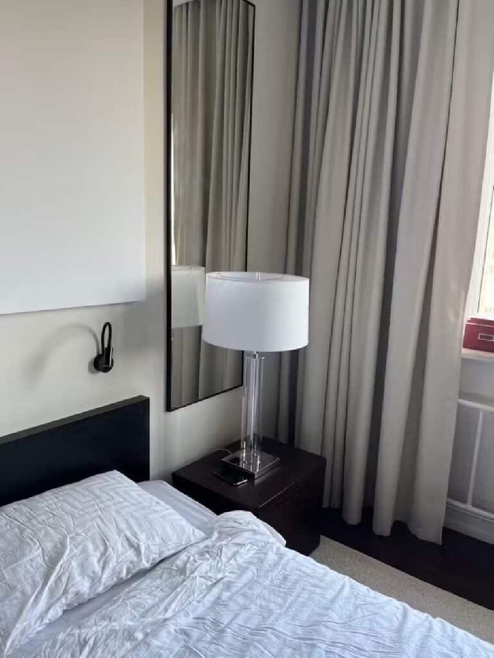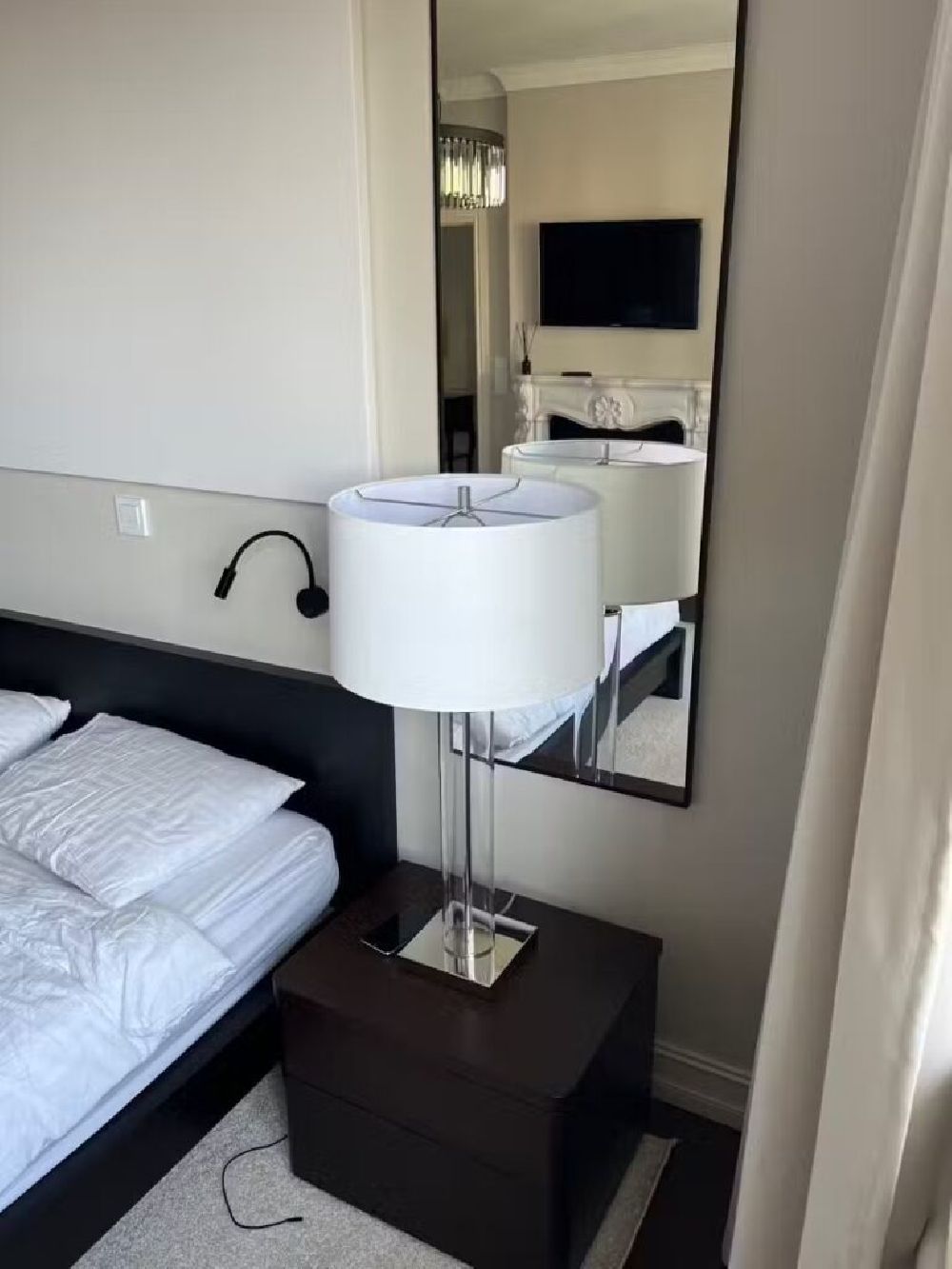 Для спальни: Установленная на прикроватной тумбочке, она обеспечит идеальный мягкий свет для чтения перед сном, не мешая партнеру.